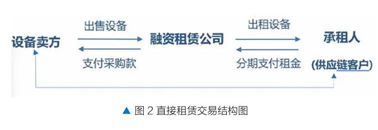 直接租赁,指融资租赁公司根据承租人的需求,直接购买指定的设备资产,并将其出租给承租人使用。承租人按约定支付租金,到期获得该设备资产。
