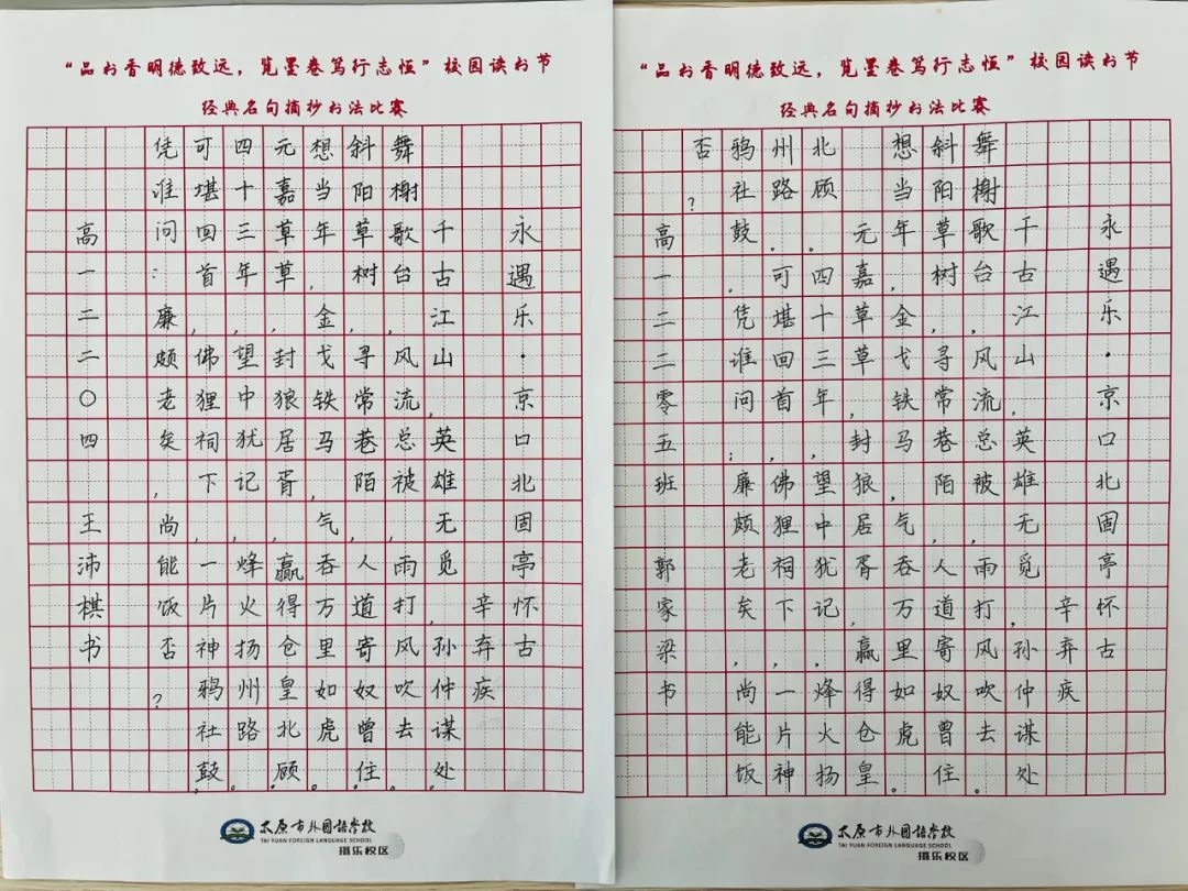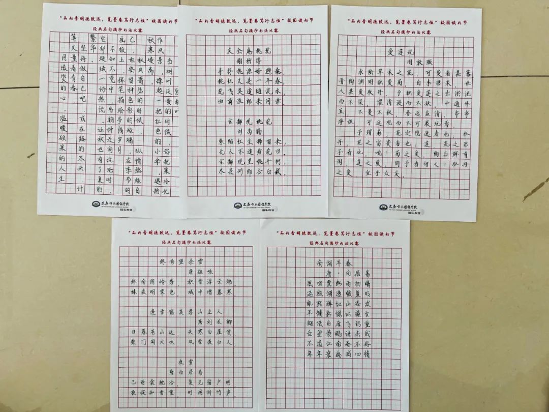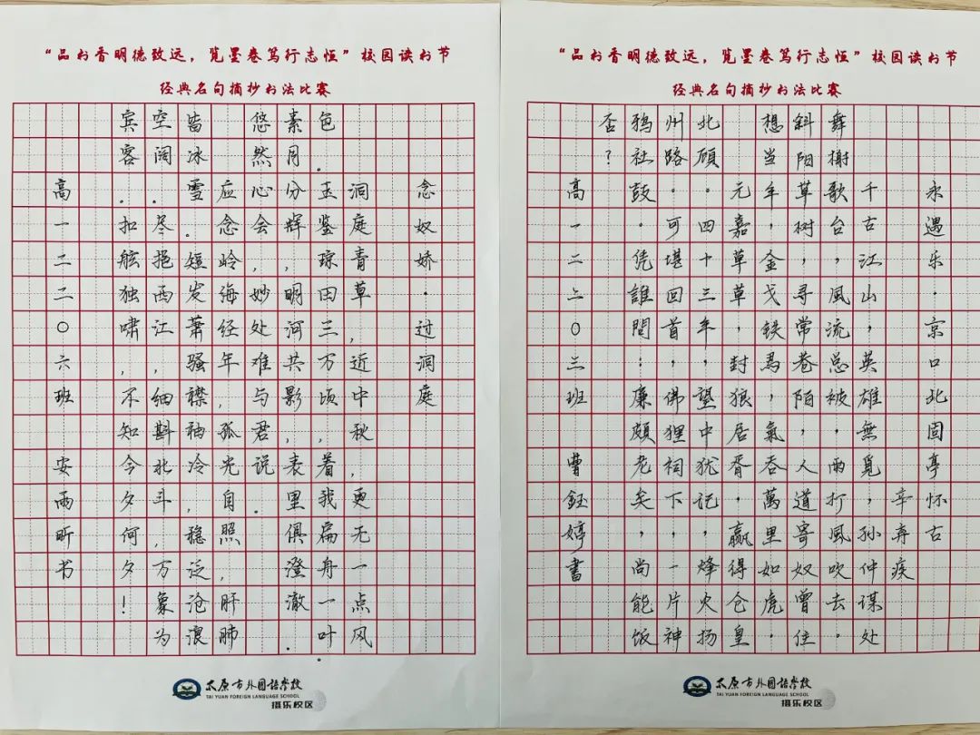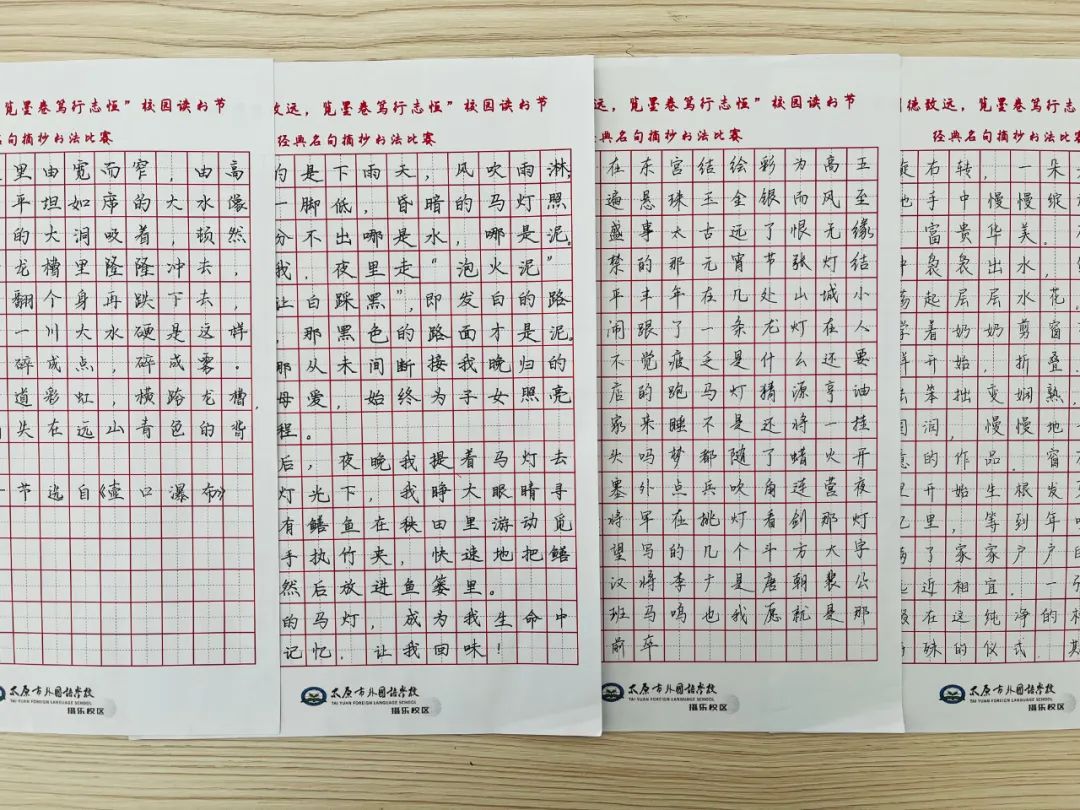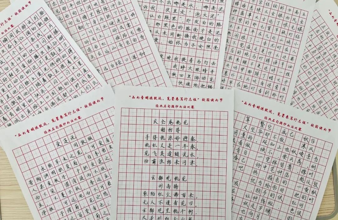 读书节自然少不了名句摘抄书法比赛的身影,这是一场豪杰与志士的比拼,也是一种文化与传承的呈现。学生们利用硬笔书法时间,以班级为单位组织学生进行经典名句摘抄书法比赛,学生们笔下的字姿态横生,既有字字珠玑的楷书;也有刚劲有力的行书;甚至还可见笔势雄奇的草书。