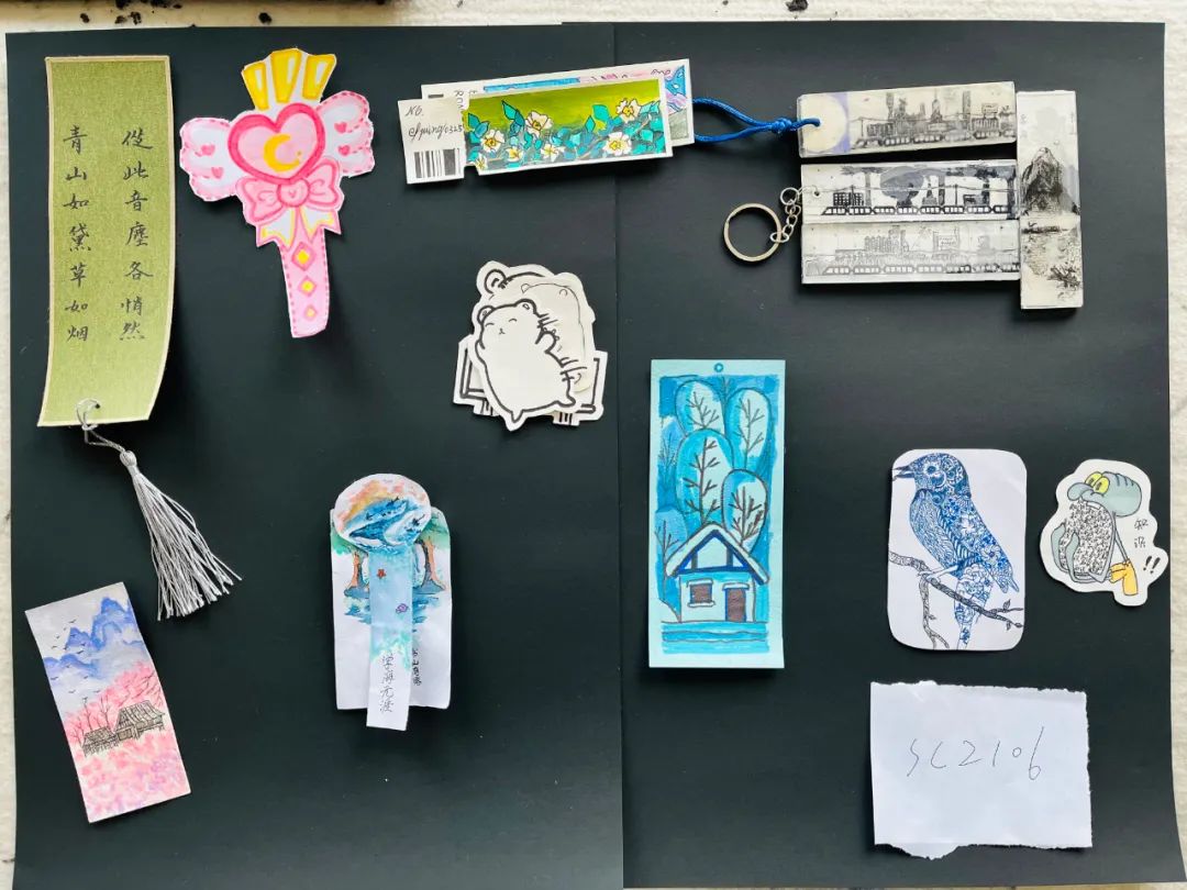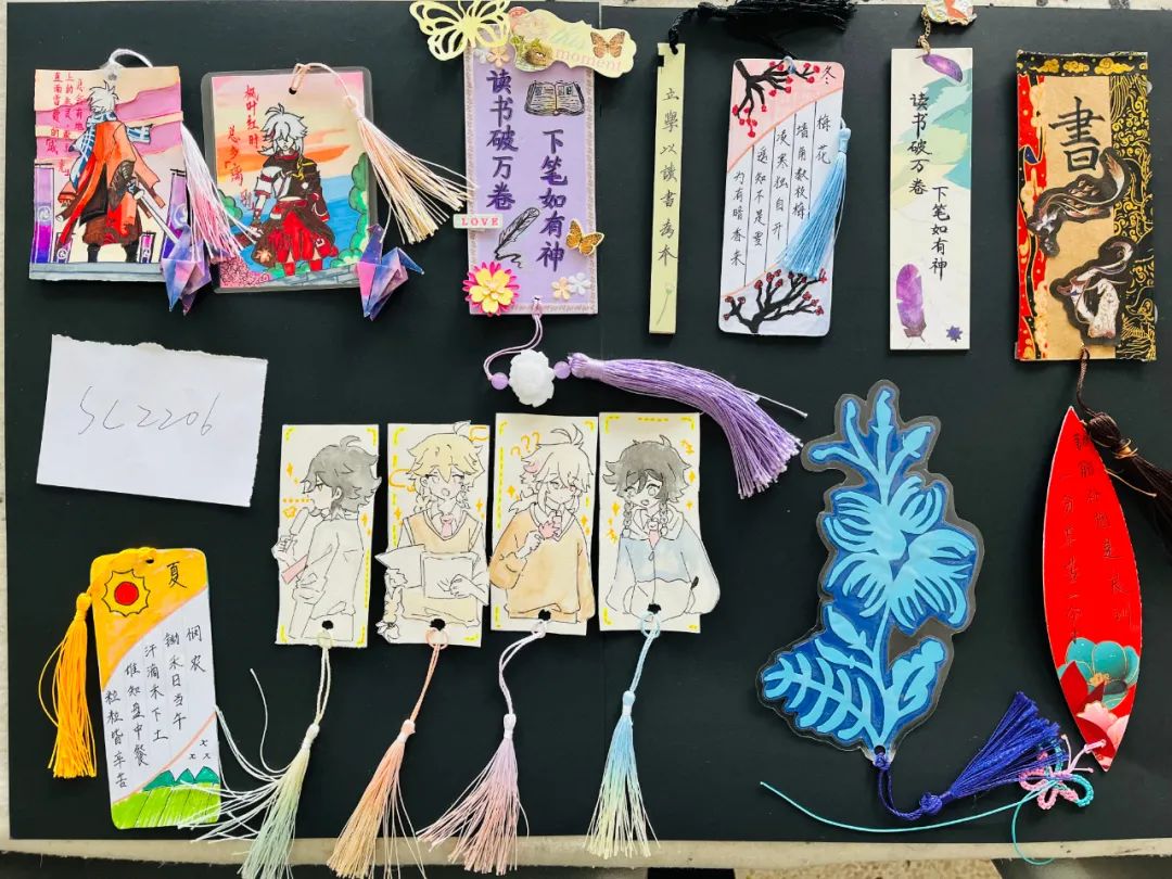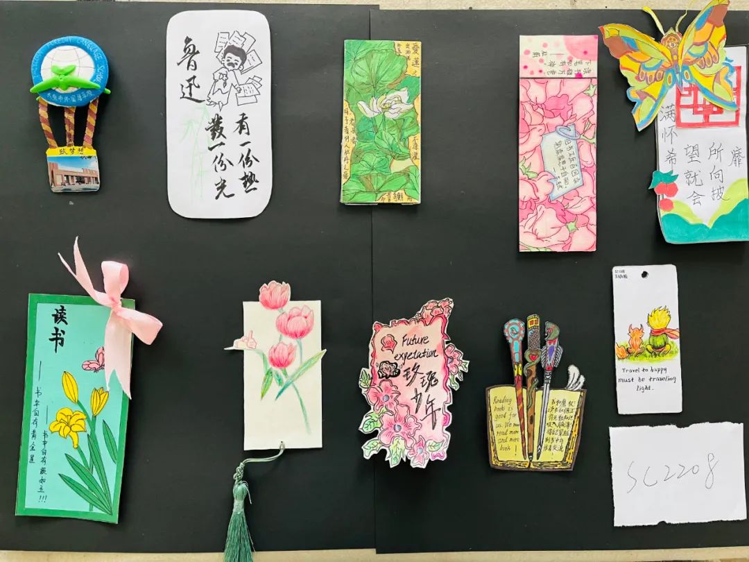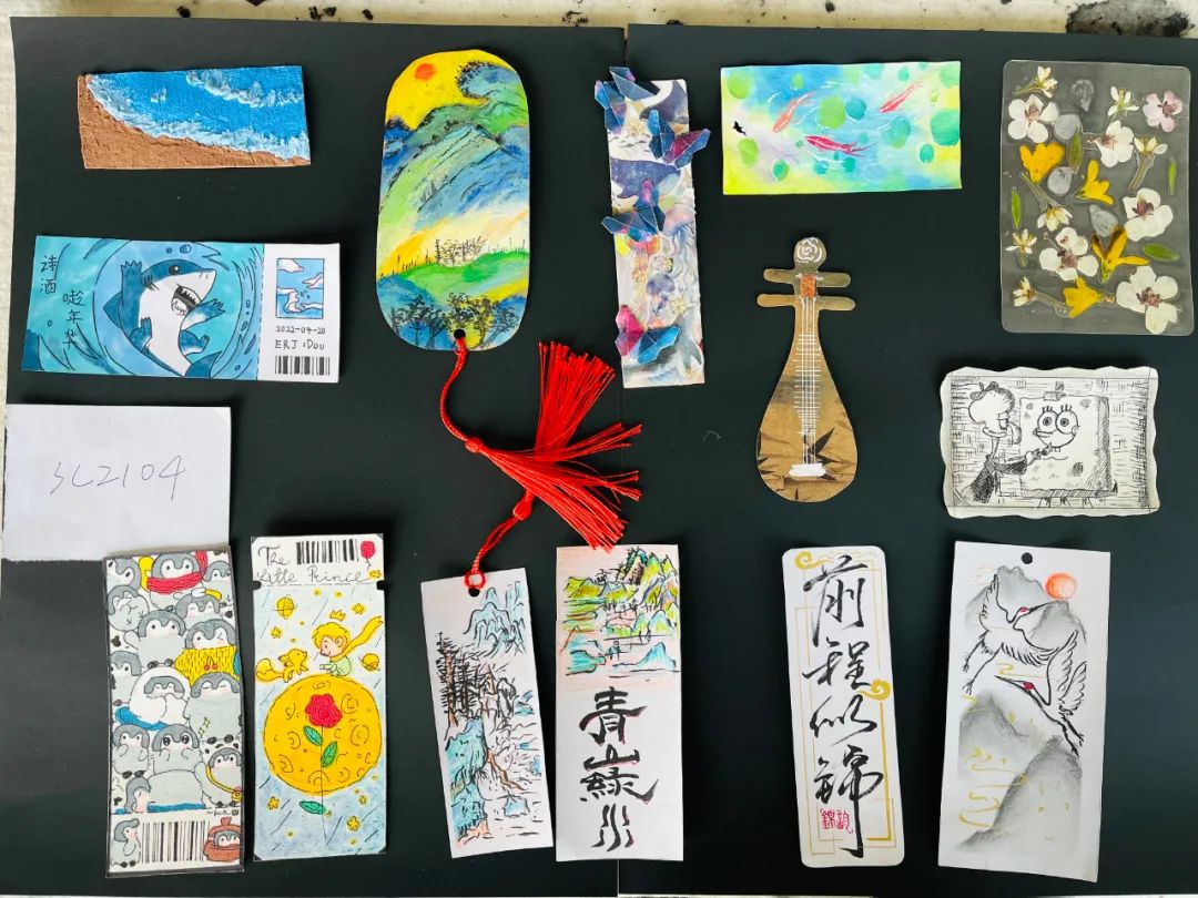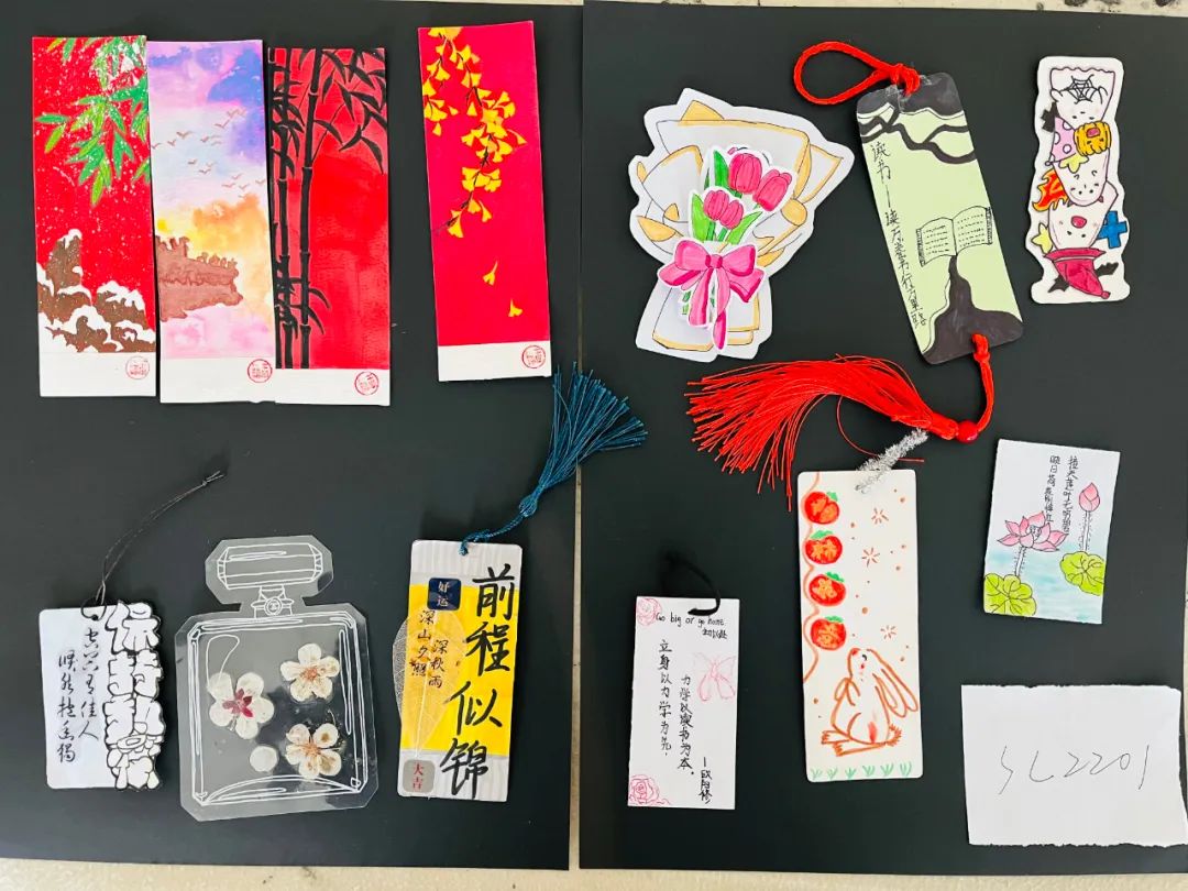 读书与书签相伴相依,作为书的标记,它可是最实用的常物,也可为匠心的艺术品。此次读书节,学生们设计的书签无论是书法类,还是绘画类都各具特色,似春风、似夏花、似秋雨、似冬雪......精妙入神。