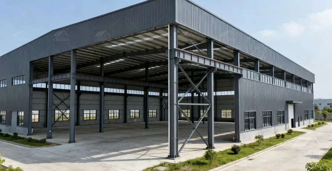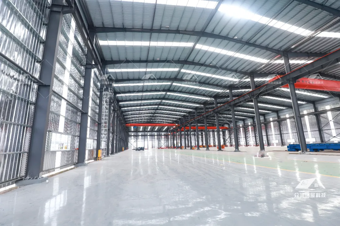①空间灵活:钢材强度高,可实现30米以上大跨度设计,无过多立柱遮挡,适配各类生产线布局与大型设备安装;