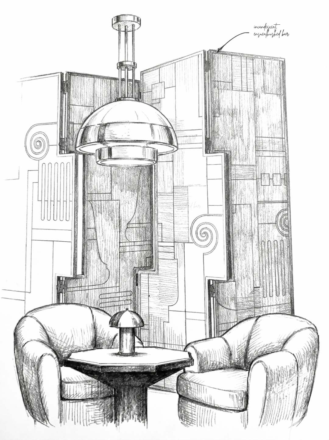 Forbidden Oasis: A private lounge with an Art Deco style