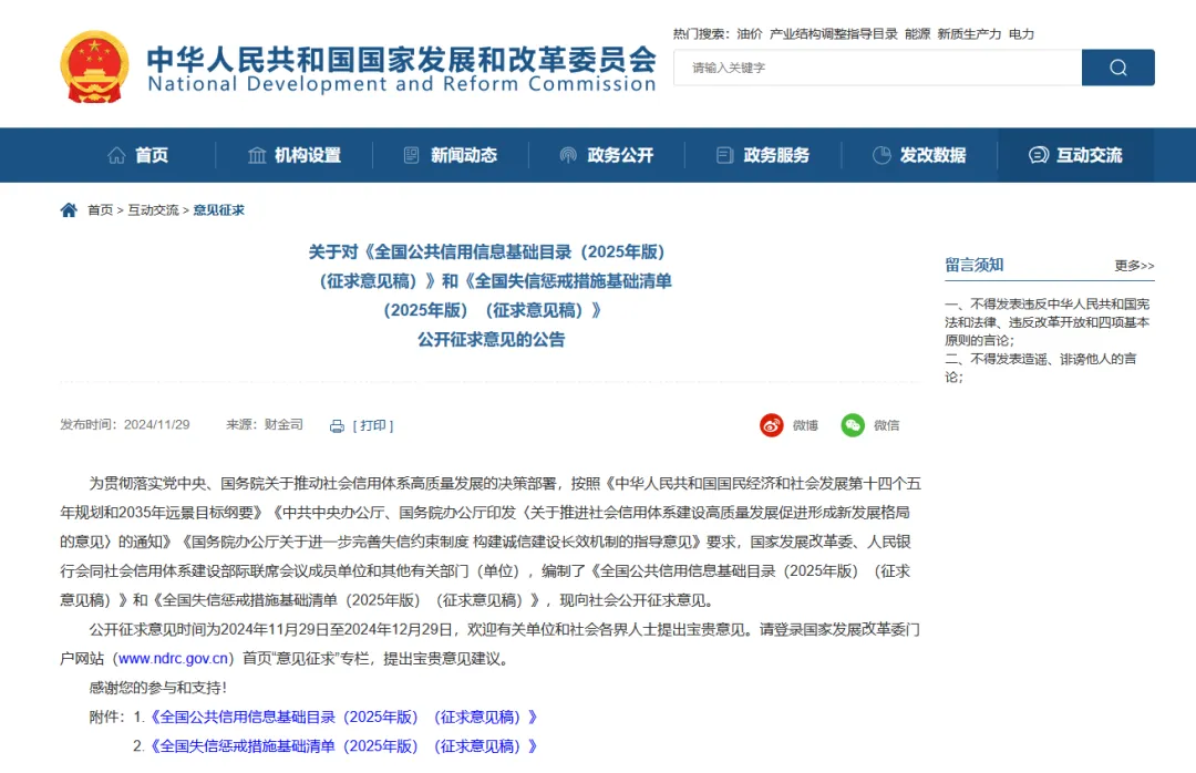近日,国家发展改革委、人民银行会同多部门发布了《全国公共信用信息基础目录(2025年版)(征求意见稿)》和《全国失信惩戒措施基础清单(2025年版)(征求意见稿)》,向社会公开征求意见(11月29日至12月29日),引起广泛关注。这两份征求意见稿聚焦社会信用体系建设,其中多项规定将深刻影响招标投标和政府采购领域的信用格局。