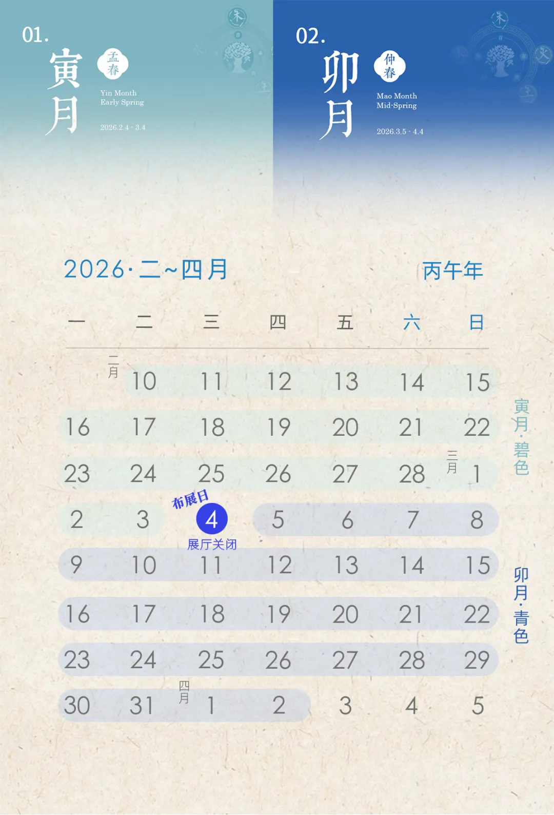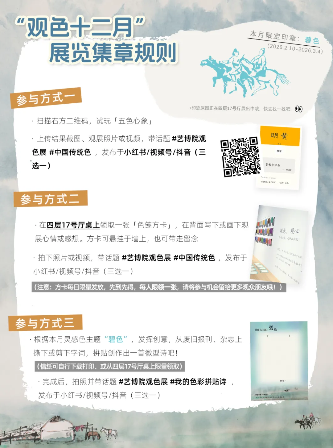 ·2026年3月5日(周四),四层17号展厅恢复正常开放。第二期卯月“青色系”展品接档,展至2026年4月2日(周四)。