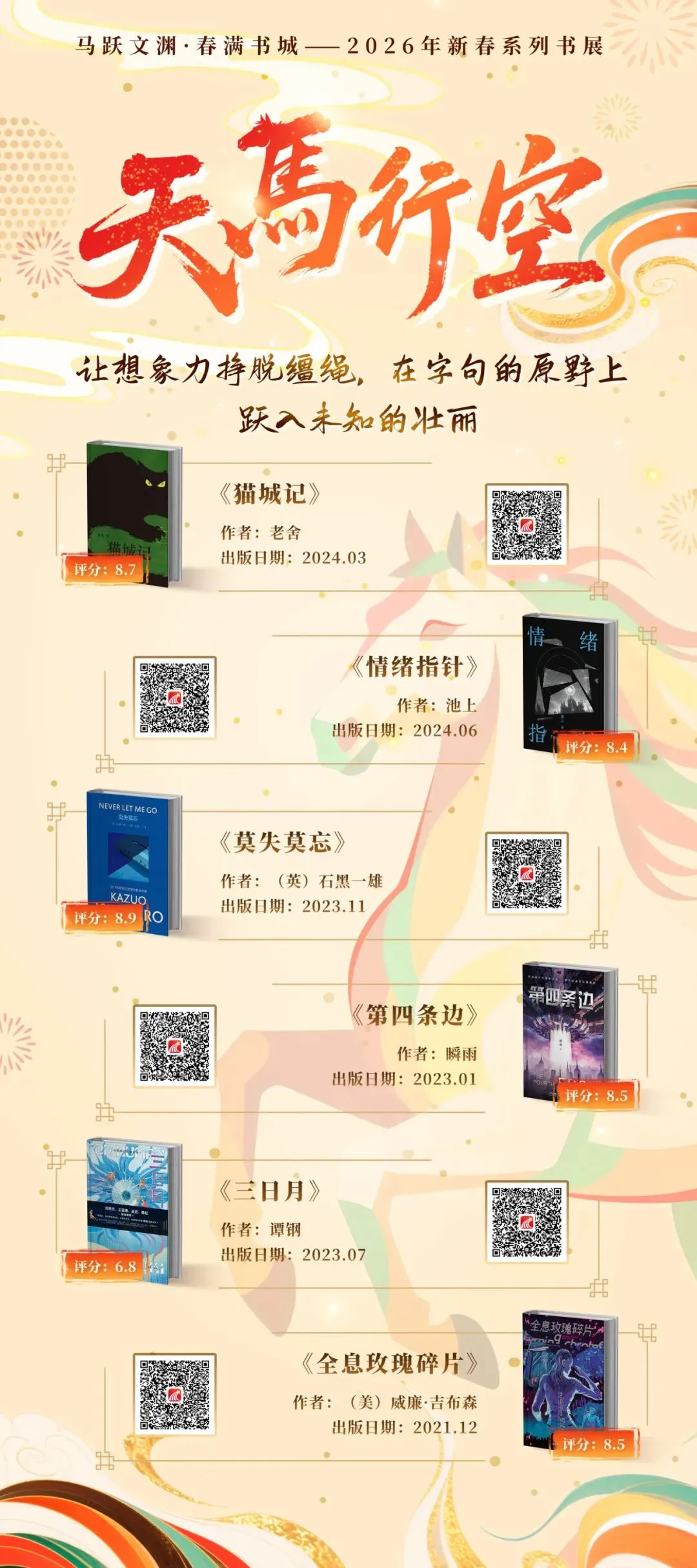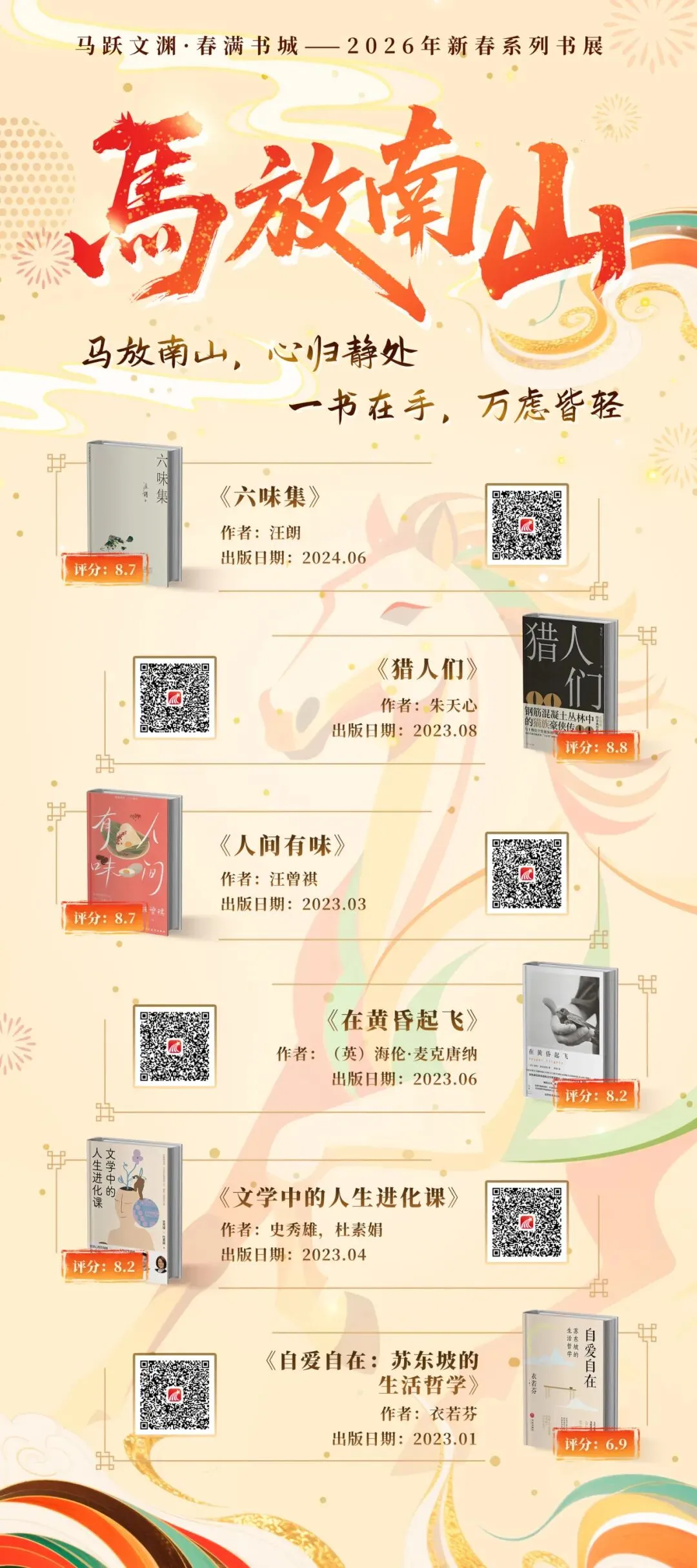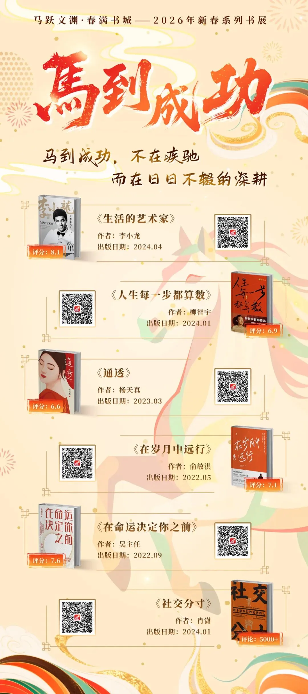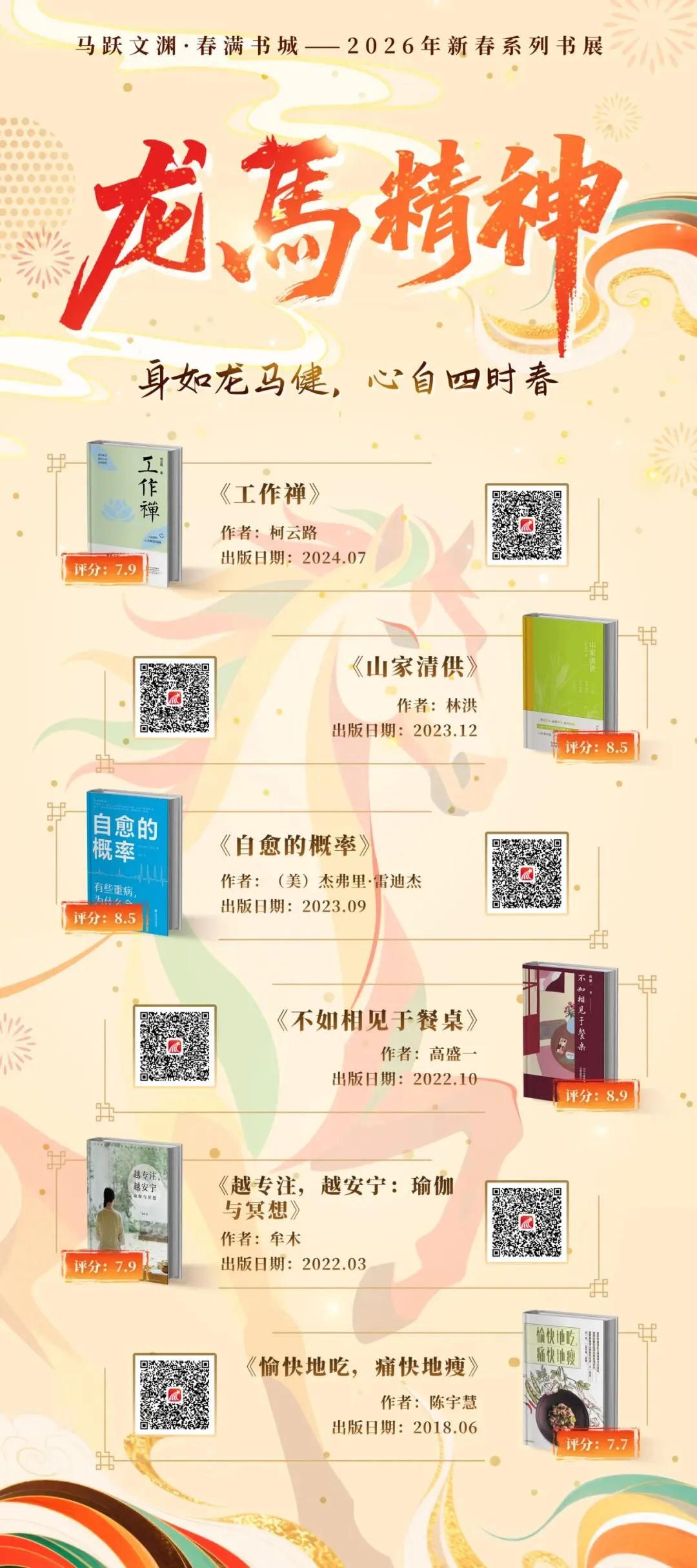 本书展以“马”为引,精选十三个含“马”成语,依其意境配以新书佳作:从梁漱溟、吕思勉、林语堂的沉静著述,到朱天心、陈果、杨天真等人的敏锐书写,涵盖小说、传记、历史、情感等诸多领域。每一组成语与书籍的相遇,都是古今精神的一次共振,它让沉淀千年的语汇焕发生机,引领我们共同感受中华文化绵延不绝的磅礴气韵。