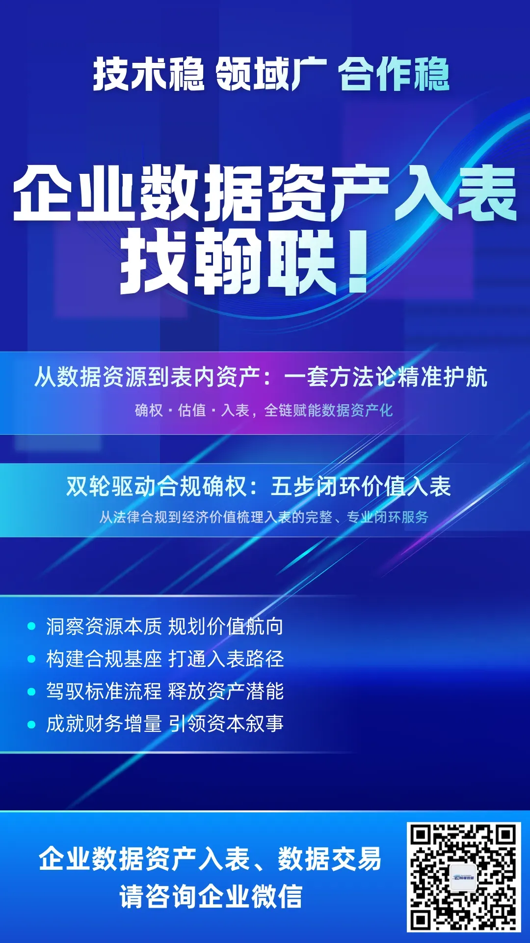 如需企业专属数据资产估值方案、免费估值咨询,结合自身行业、数据类型精准测算,后台回复【企业需求】,获取一对一业务对接,专业团队为你答疑解惑、落地执行,帮你给“看不见的资产”定好价,实现数据变现增值。