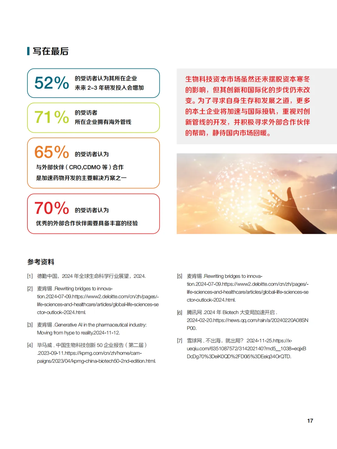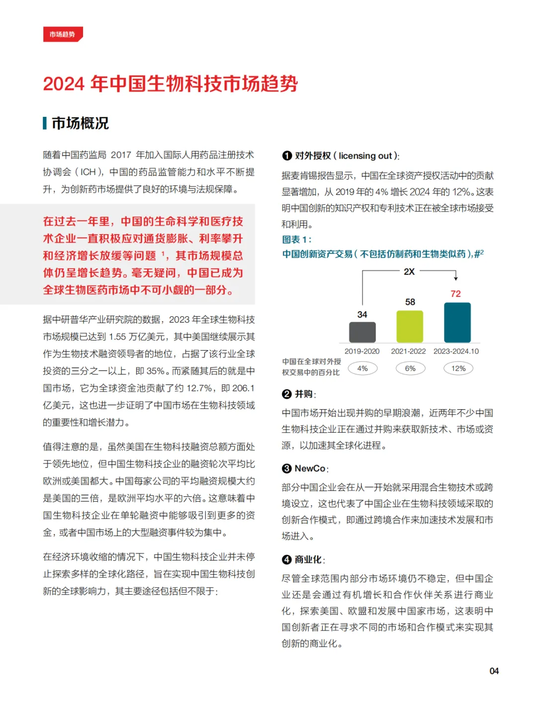 中国生物制药行业在经历全球资本紧缩后,随着全球趋势的变化、监管政策的调整以及行业生态环境的改善,正在逐步回暖,展现出新的活力。尽管资金环境依然严峻,但众多中国本土药企和生物科技企业都在通过加强研发和优化资源配置,努力推动关键项目进展。同时,随着出海趋势的持续发展,各中国科技企业也在寻求国际合作,以拓宽资金渠道并增加市场机会,确保持续的创新和发展。