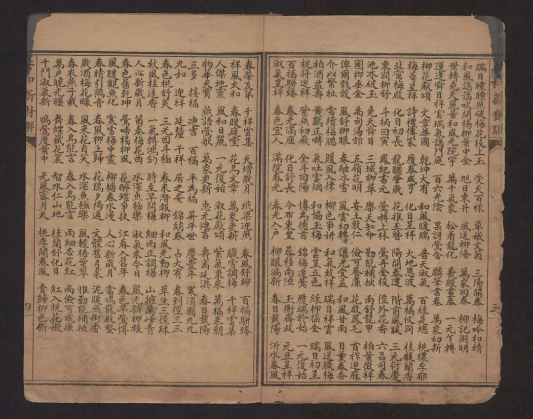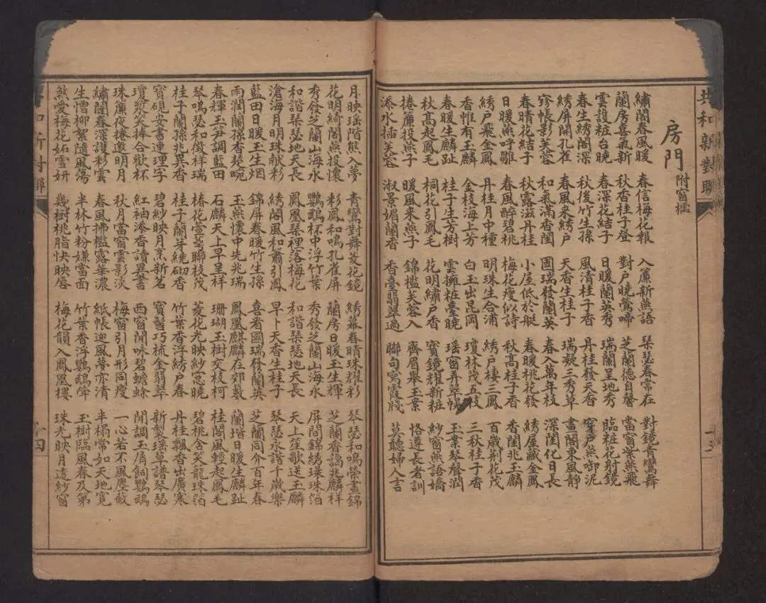为响应国家图书馆号召,喜迎 2026 马年新春,界首市图书馆特推出楹联数字化项目线上展。本次展览精选《帝京岁时纪胜》《新刻联弹》《新鐫群雅不俗》等十余部珍贵古籍中的楹联文献,通过数字化手段全景呈现传统楹联的格律之美与文化内涵。读者可足不出户云端品读经典,在墨香古韵中感受中华优秀传统文化的独特魅力,共赴一场别开生面的新春文化盛宴。