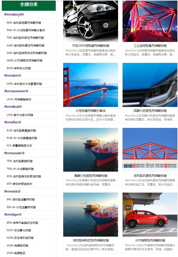 公司产品主要有水性/溶剂型丙烯酸树脂、水性溶剂型聚氨酯树脂、油墨用树脂、聚酯树脂、改性树脂及分散助剂等多个类别。