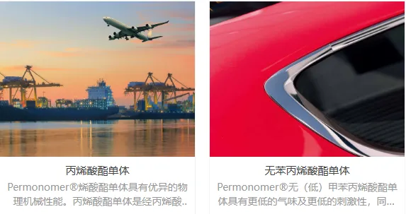 其中光固化材料相关的产品有丙烯酸酯单体、紫外光固化树脂。丙烯酸酯单体主要牌号为Permonomer®,主要特征如下,其中无苯类单体同时还具有更低气味及刺激性。