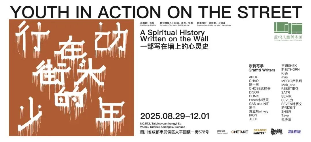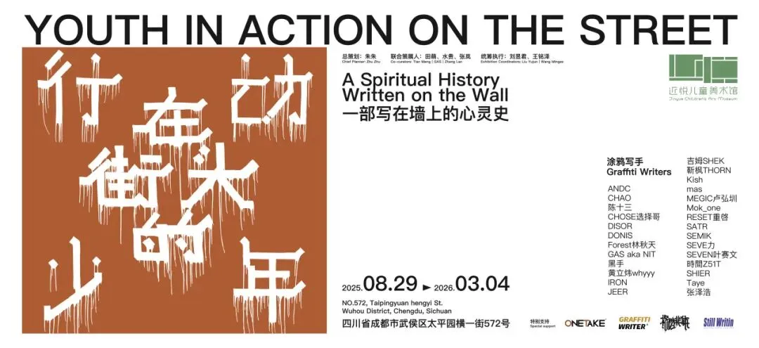 展览“行动在街头的少年——一部写在墙上的心灵史”展出了27位中国大陆涂鸦写手的旧作新创。虽然他们已不再是少年,但涂鸦见证了他们在街头完成的自我教育。这场教育没有发生在教室,而是在城市的墙壁上。