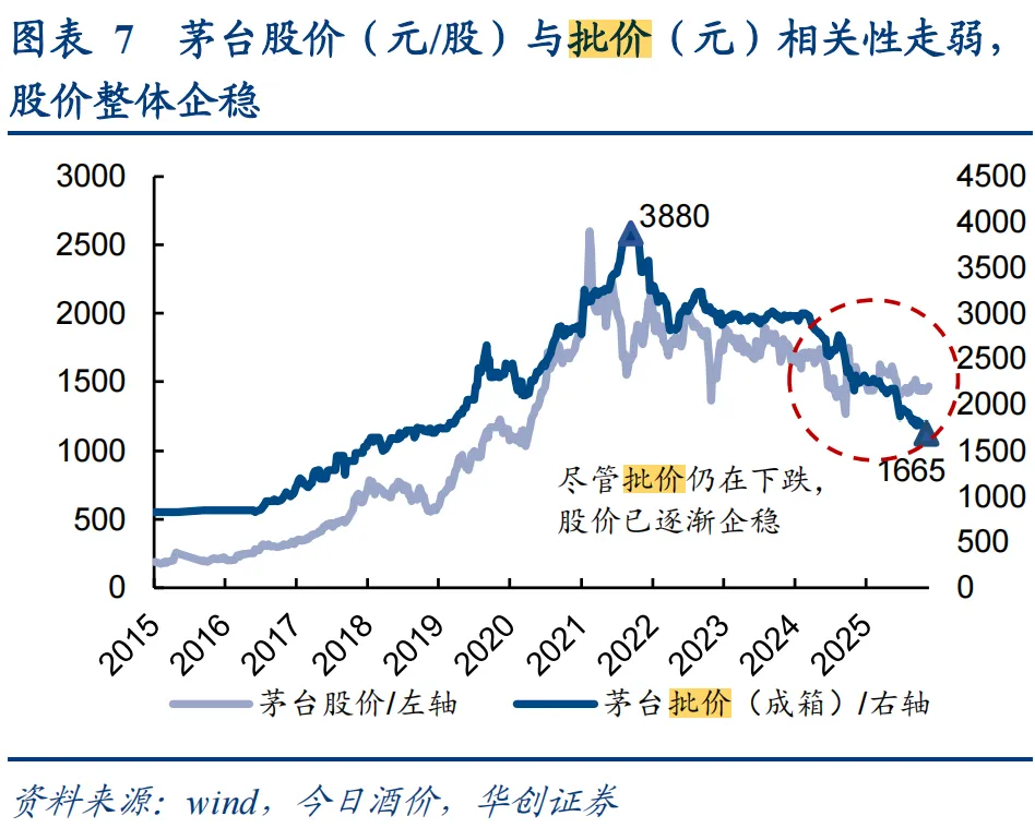 以茅台的批发价为例验证行业整体的下行周期,此次行业下行周期开始于2021年末,至今将近5年