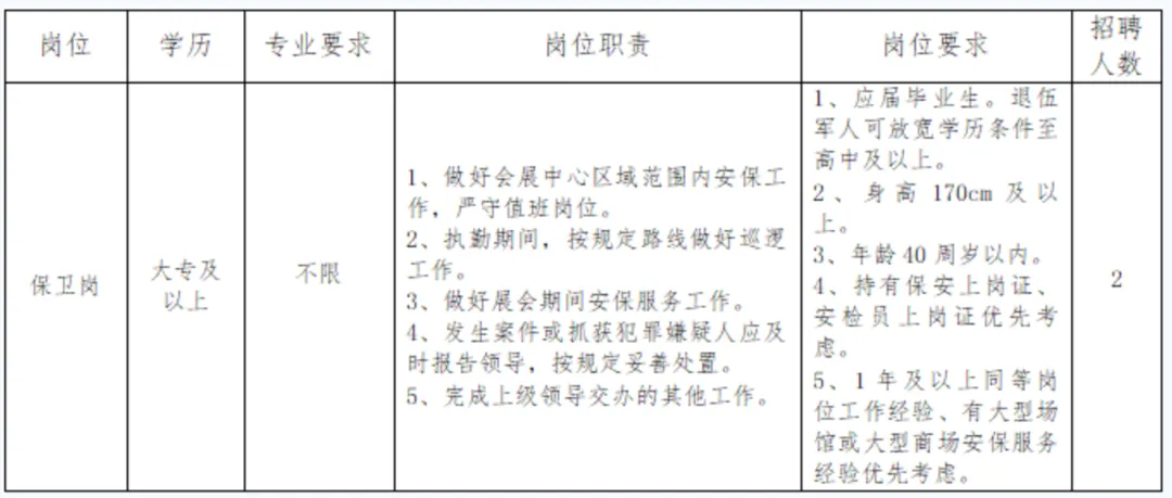 点击关注"八闽求职"福州市会展服务有限公司隶属于福州会展会务集团,负责运营管理福州海峡国际会展中心,是一家集场馆运营、展会服务、广告设计与搭建为一体的国有企业。公司秉承“诚信务实、品质服务、合作共赢”的经营理念,致力于推动福州会展业向国际化、专业化、市场化发展,助力福州打造现代化国际城市建设和东南会展高地。因业务发展需要,公开招聘2名工作人员,现将相关事项公告如下:- 具有中华人民共和国国籍,遵纪守法,具有良好的思想政治素质和职业道德。