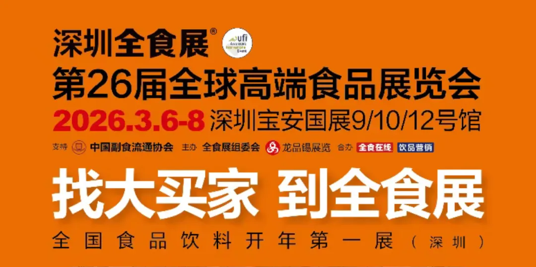 第26届全球高端食品展览会(全食展)将于2026年3月6-8日,在深圳国际会展中心(宝安)举行。同期将举办2026中国糖果零食展览会、2026全国速冻食品及加工展览会、第21届中国冰淇淋冷食展览会(中冰展)、第7届中国饮品产业展览会、2026全国食品机械与包装展览会。规划展出总面积15万平米,预计专业观众18万人次。届时,来自30多个国家和地区的2800+家食品饮料、休闲食品、进口食品、潮流食品、速冻食品和冰淇淋品牌前来参展,各个细分领域的头部品牌将逐一亮相,联合发布2万余款2026年度新品!