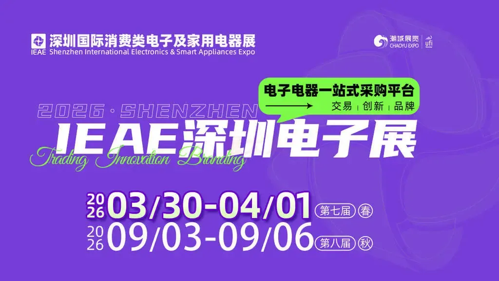 作为中国电子电器垂直领域的专业展会,2026IEAE深圳国际消费类电子及家用电器展(春)将于3月30日-4月1日在深圳福田会展中心盛大举办!