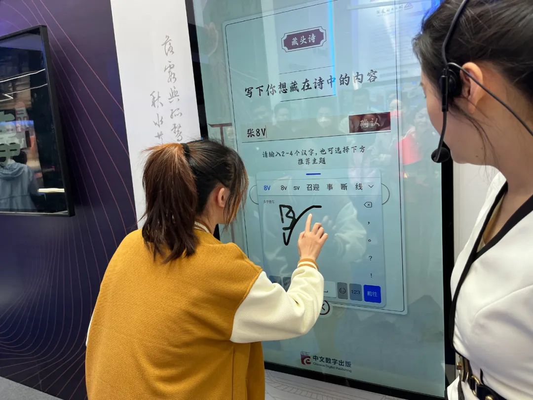 在江西数字文化产业展上,凡是来到江西出版传媒集团展位的与会嘉宾和观众,无不对“赣鄱书云”数据库、《江右文库》数据库和“壮游江右数字图卷”“AI诗词创作”四大展项交口称赞。一些对古籍和江右文化特别热爱的观众还非常关心“赣鄱书云”、《江右文库》数据库的建设和“壮游江右数字图卷”的数据搜集工作。来自九江柴桑区的郑女士说:“古籍的鉴赏是一种高雅文化,数字化古籍除了方便古籍爱好者、学者掌握其知识性、学术性之外,是否还有故事性的内容延展,比如古籍的数字化工作是如何进行的,这一点将来也可以向观众进行展示。”而最让观众们喜爱的则莫过于可以进行互动的“AI诗词创作”,虽然现场只有一台机器向观众提供创作服务,但前来一展诗才的观众络绎不绝,不少人实在等不及则纷纷拿出手机扫描二维码在手机上进行自己的个性诗词创作。