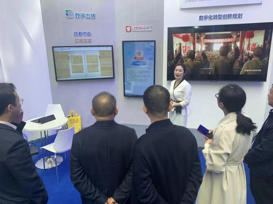 在数字展上亮相的“赣鄱书云”数据库和《江右文库》数据库是近年来江西出版传媒集团在数字出版方面的重大工程。“赣鄱书云”数据库是江西出版传媒集团响应江西省数字经济一号发展工程政策,在数字创新规划中启动的重要融合发展项目,平台目前已采集赣版图书出版物、音像制品等信息8万多条,入库各类资源近2万种。未来将为旗下所有出版单位提供全品种出版物全数字、全上链、全云上运营服务。《江右文库》数据库是基于我省重大文化工程《江右文库》实施的图书数字化加工工作,该数据库由江西中文传媒数字出版有限公司承建,包含了古籍阅读的各类基本功能,如批注、对照、书签、检索、储存等。可以说“赣鄱书云”数据库和《江右文库》数据库承载了江西数字文脉的建设重任,如“【嘉靖】江西通志”序中所述“我国家大一统之盛,文学掌故之臣,各司其职,金匮石室之所藏,可与坟典争光者具在也” 。他们的建设将为赣版图书数字化保存、保护与传承,弘扬赣鄱文化,谱写全面建设社会主义现代化江西的新篇章提供强大精神动力和文化支撑。