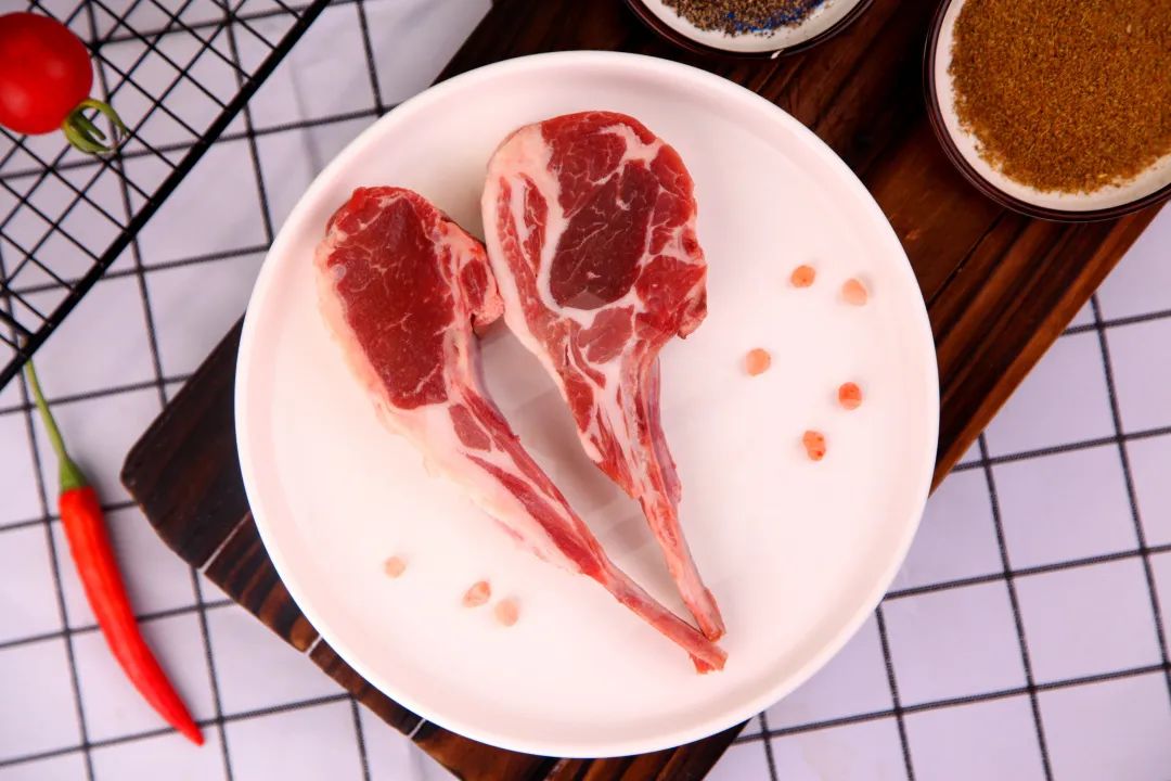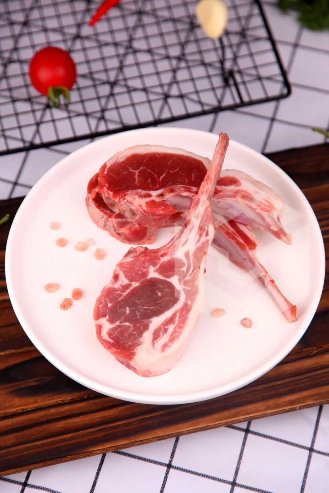 特点:带骨羊半排,原部位肉切割,去除多余油脂筋膜,紧实有弹性,肉质丰盈饱满,肥瘦相间,肉嫩骨小,奶香不膻