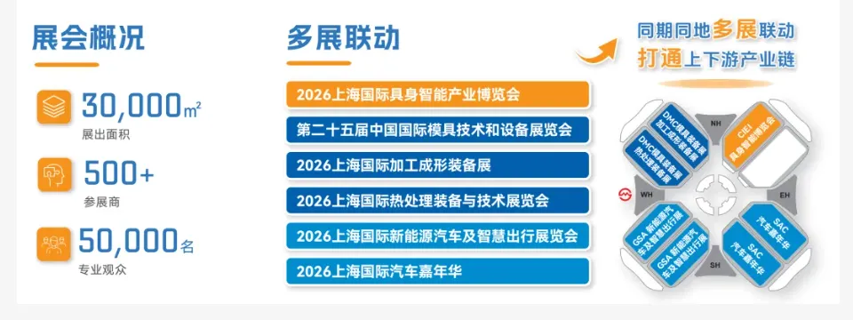 CIEI 2026作为聚焦“具身智能”全产业链的前沿融合型国际展会平台,旨在构建一个超越传统展览的价值新枢纽。展出面积将达30,000㎡,预计吸纳参展商超500+,专业观众50,000名。展品范围覆盖9大核心领域,包括:具身智能本体、感知系统、决策认知系统、执行系统、电池储能系统、汽车智能网联、应用场景案例展示、产学研融合、制造装备。届时,将同期同地多展联动,打通产业链上下游。