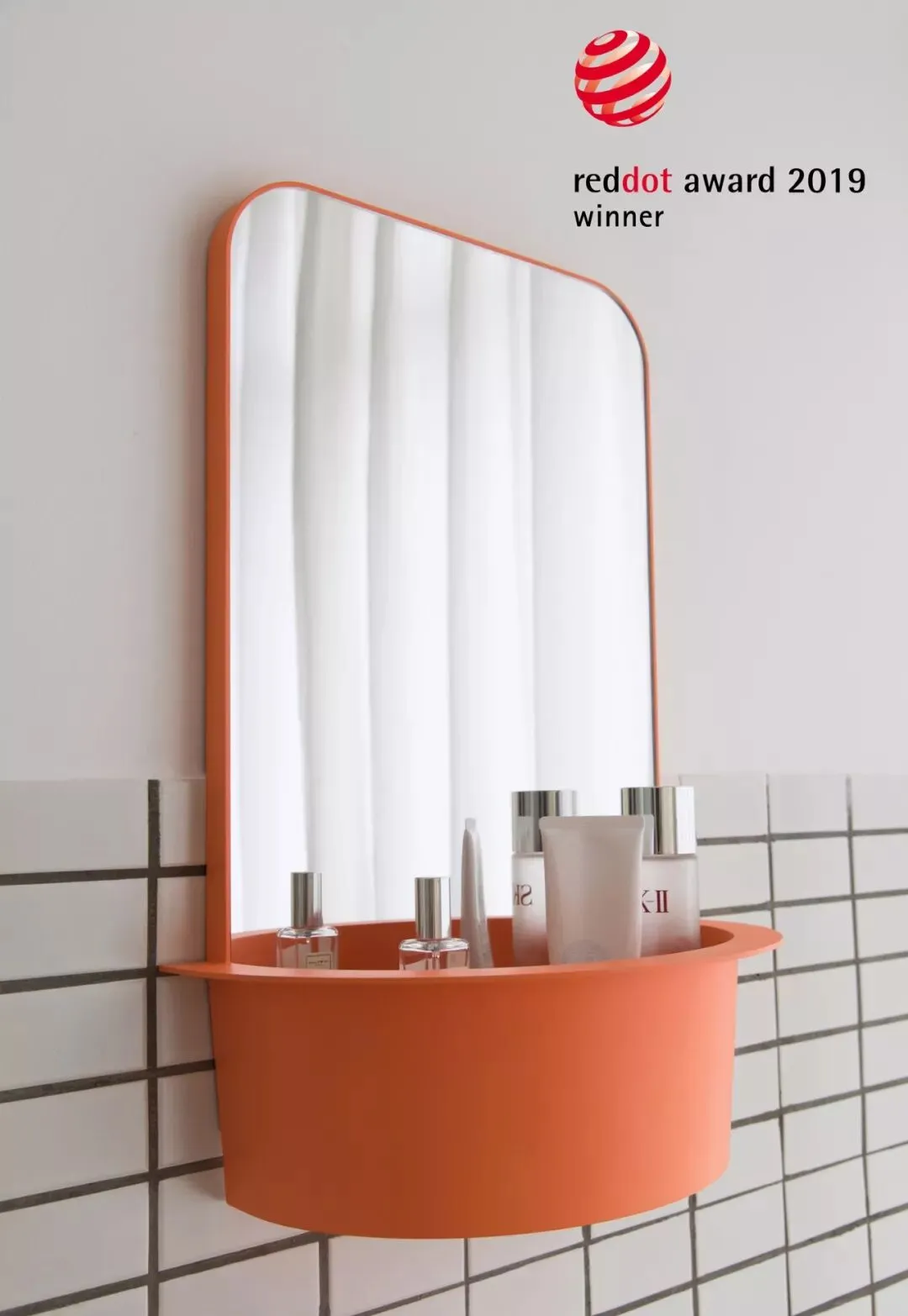 浴室总是湿漉漉的,洗完热水澡后,镜子表面的雾气多得似乎可以凝成水珠流下来。我们为这个现象编织了一个故事。镜子底部有一个小水盆,好像在接住留下来的水珠。“水盆”其实是一个置物架,可以将一些小物品收纳在其中。当雾气布满镜面的时候,这个幽默的隐喻方才浮出为人们所感知。