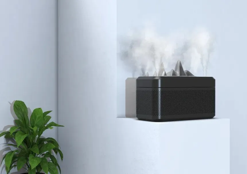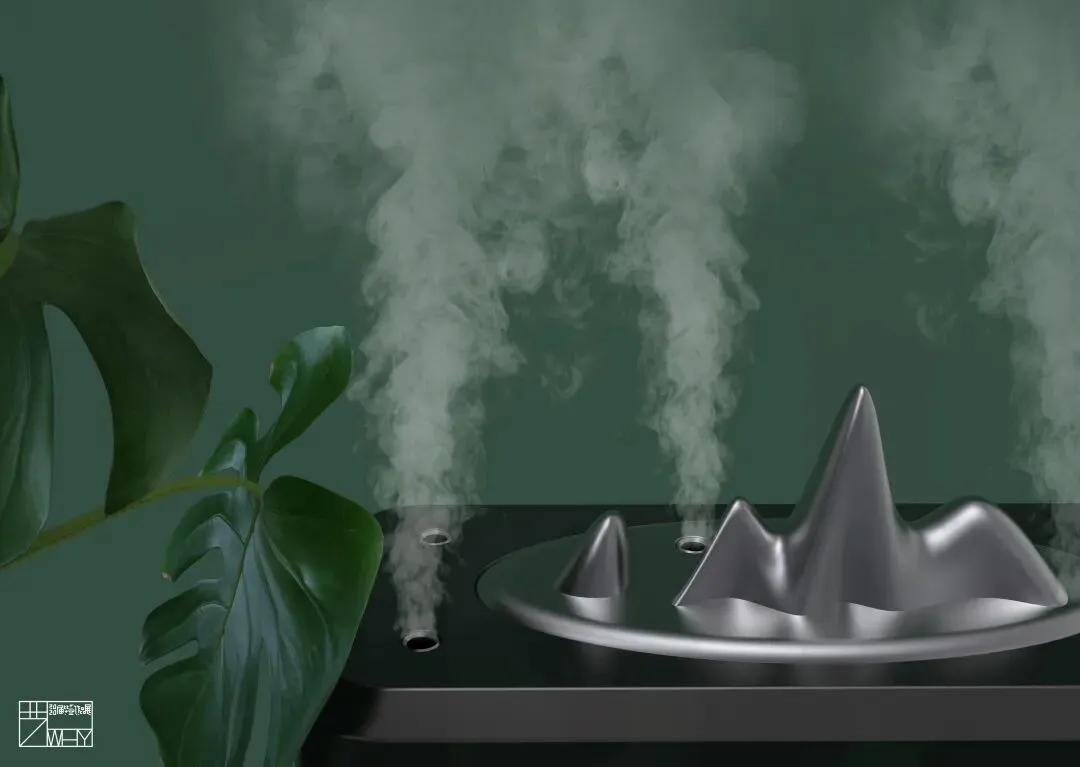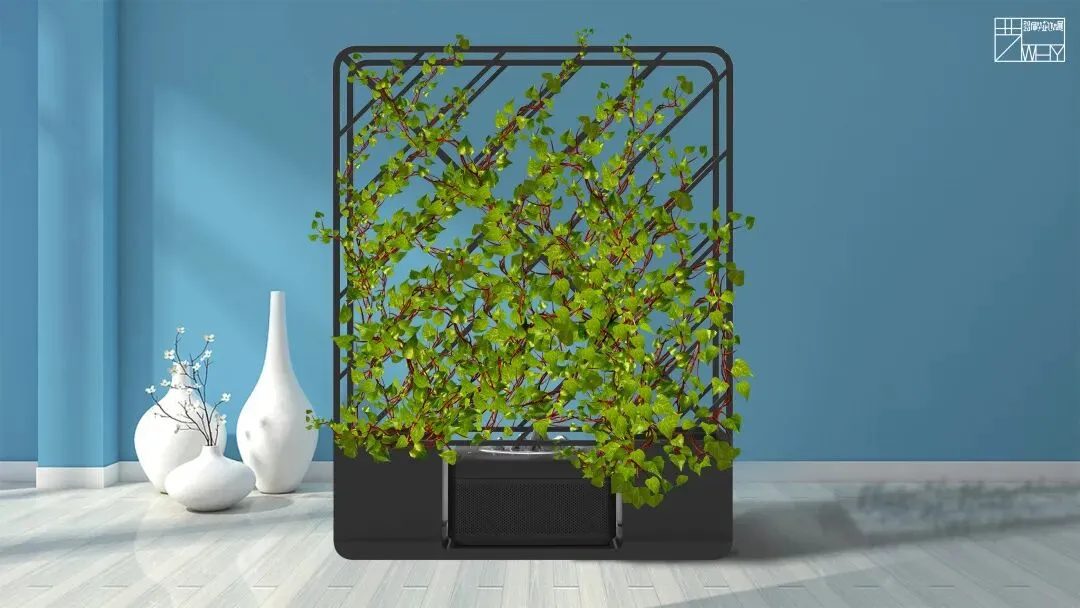 山林水雾之间 鸟语花香之季 ,生态屏风灵感来源于大自然,拥有加湿器模块和植物模块,当加湿器开始工作,就像身处在清晨水雾还未散去的山林间,希望在绿色植物的映射下,赋予家居产品生命,让人们即使处于室内环境下也可以感受到室外与大自然的清新。