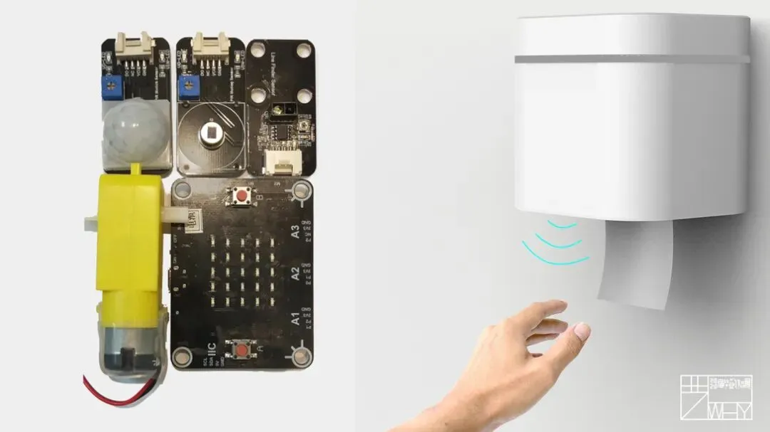 生活中使用卫生纸的时候我们总会因为力量过大扯出过多的卫生纸,而多出的卫生纸,如果不及时用掉就造成浪费的现象。通过硬件算法来控制出纸量,达到环保节约的目的。感应夜灯和手机无线充电的加入为其增加了更多的功能性,手机充电时你不再会因为寻找充电线而苦恼,在漆黑的夜带来一束温暖的灯光。