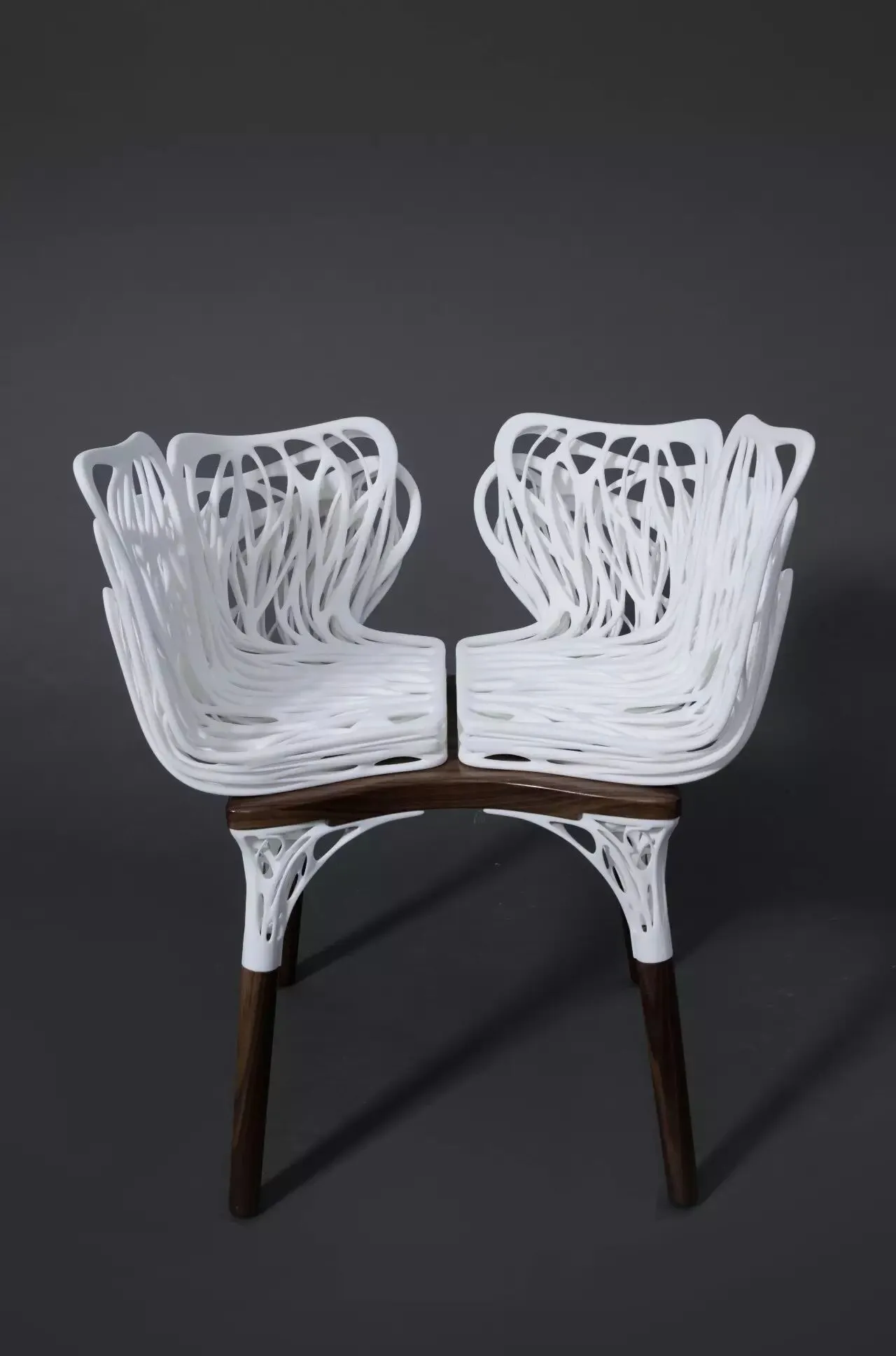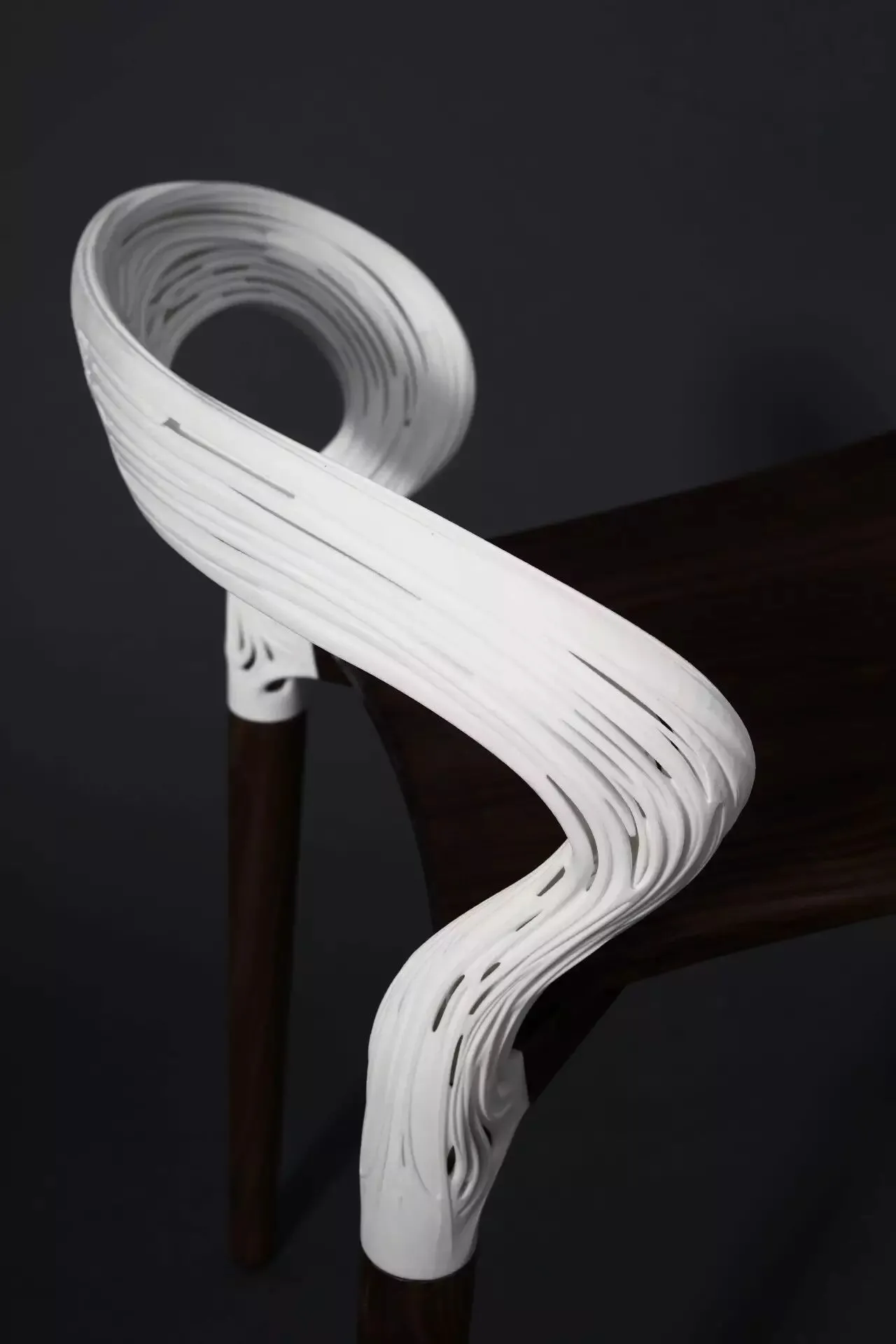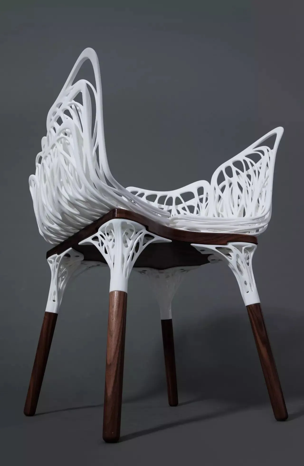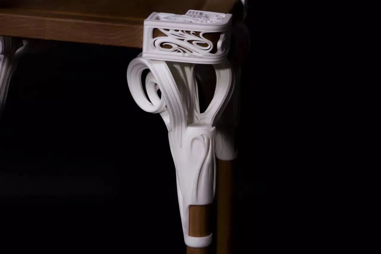 充分利用3D打印技术可快速成型的特性,建造手工无法制造的复杂外观和结构;替代传统实木家具中加工难度大,损耗高的隼牟结构。把生于自然的木材色彩,纹理和电脑建模的构件造型相结合,设计出传统工艺无法制造的工艺椅子。