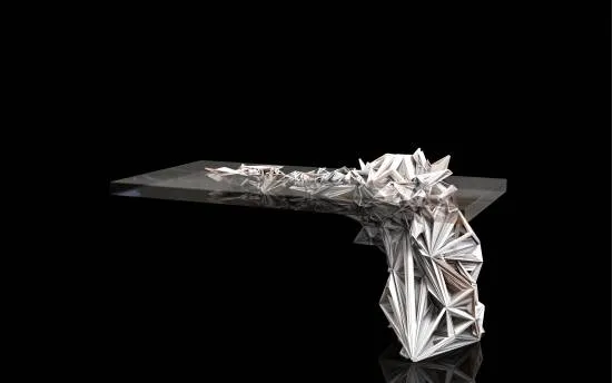 这一造型的设计有棱有角,但是在静下来看从大棱角转变到小棱角再转变到透明的一瞬间,感觉自己也是这么慢慢转变的一个。这也是透明材料能以透明化的虚幻空间扩展思维的无限性,让人产生进一步体验。所以这也是新材料新体验的一件雕塑型家具。