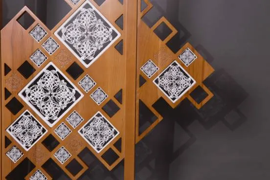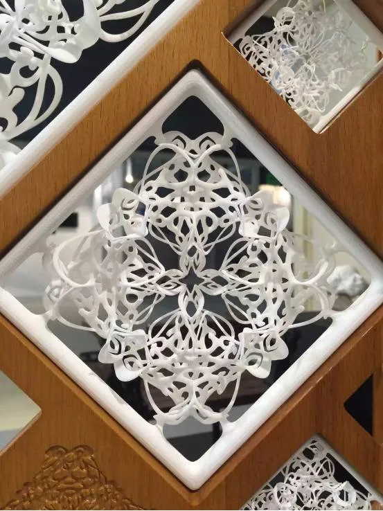 此设计灵感来源于中国传统文化的瑰宝——传统民族纹饰。屏风的元素是借助3D打印这一数字化雕刻工具,进行基本图形的打散重构,实现了从平面到立体这一维度的转化,给人以多维度的感官体验。这一转化使传统感与未来感在同一个空间发生碰撞,共生,直至和谐统一, 是对中国文化精华传承的时,又推陈出新。