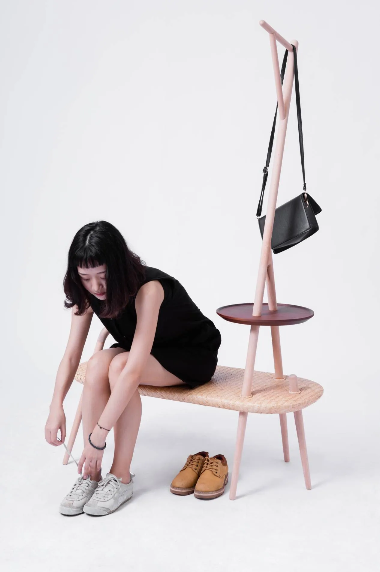 舒心、从容,轻松出门!外套、钥匙、手机、包包、鞋子近在眼前,“攀”玄关挂衣架让你外出与回家同样便捷。作品造型简洁、轻巧,藤木材质的原貌散发出自然的美感,也更具有可持续性。
