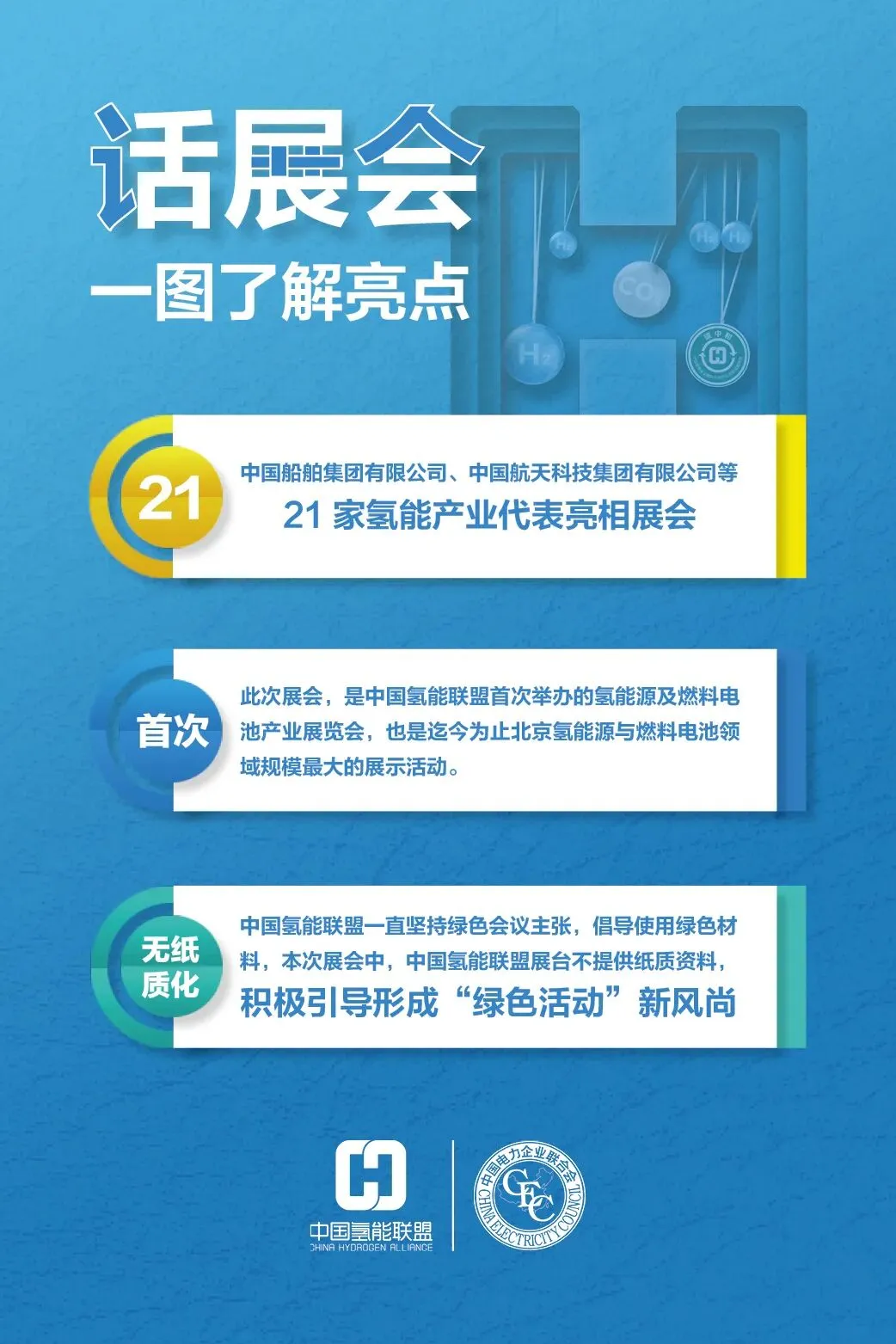 作为中国氢能联盟发起的首次氢能大秀,中国氢能联盟与20家氢能单位携最新氢能领域前沿科技、创新技术、氢能装备等亮相。这场氢能源及燃料电池行业展会盛宴,围绕“发展清洁能源,助力碳中和”这一主题,搭建了氢能源及燃料电池产业链合作交流平台,为国家向氢能生态迈进贡献力量。