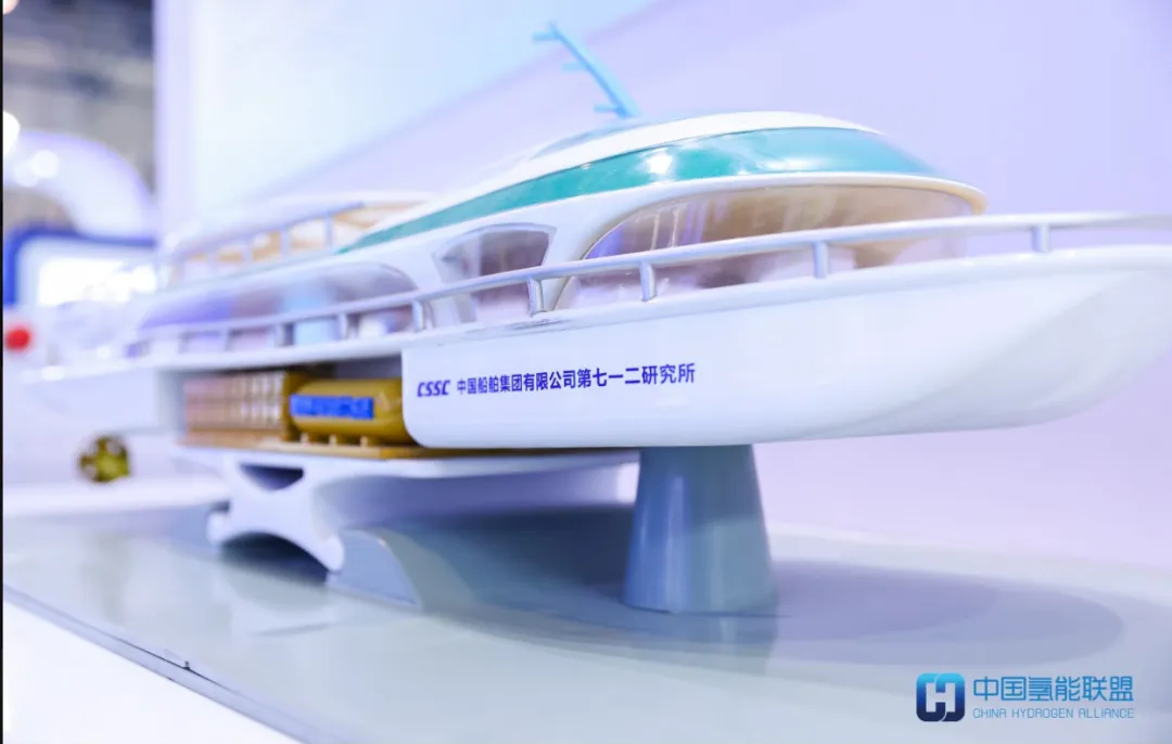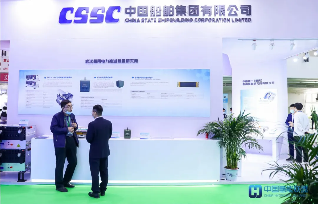 中国氢能联盟理事长单位国家能源投资集团有限责任公司(以下简称“国家能源集团”)深入贯彻落实能源安全新战略,高标准实施“十四五”发展规划,积极助力构建清洁低碳、安全高效现代能源体系。积极发挥氢能产业优势,研究推进新能源与储能、制氢、储氢、化工一体化项目,加快推进能源综合利用项目。此次展会,国家能源集团推出了自主研发的35/70兆帕加氢机,满足安全、快速、可靠的加氢要求,也是唯一获得TüV国际认证的国产加氢机;同时还展出了氢能产业链沙盘等展品。中国船舶集团—实现”30 60“贡献力量