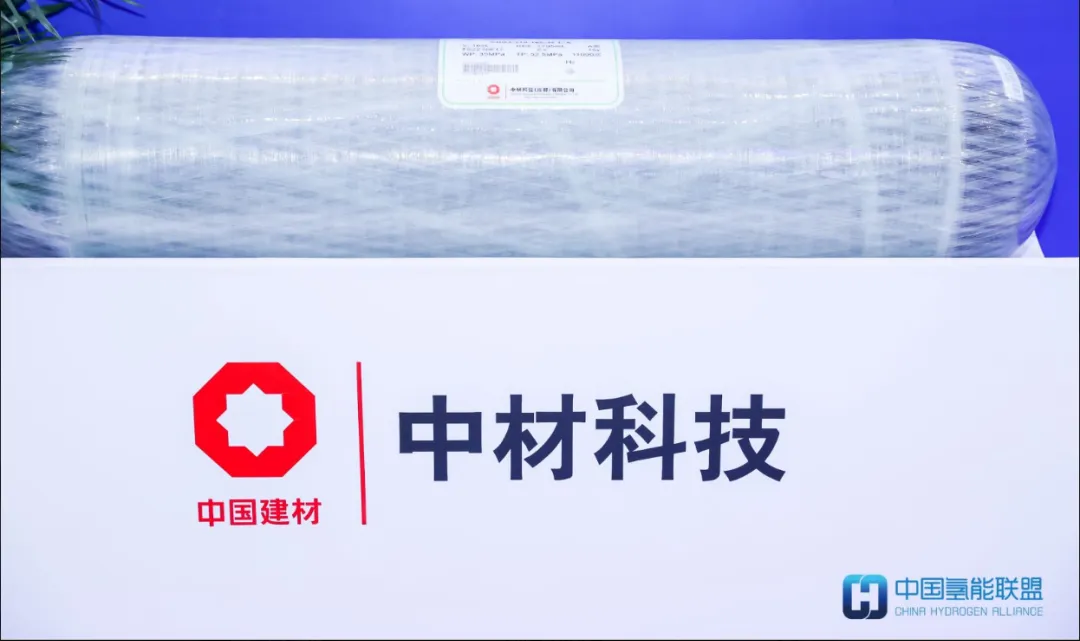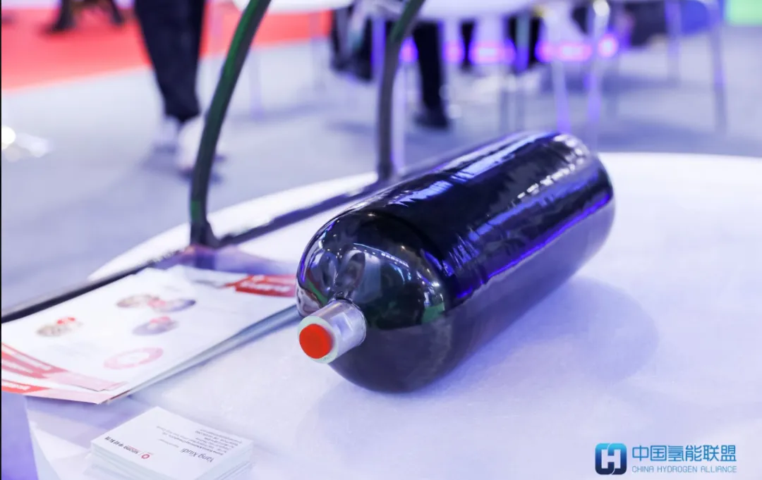 中国氢能联盟理事单位中材科技(成都)有限公司(以下简称“中材科技”)成立于2011年,是国资委直管大型央企中国建材集团(世界500强)的全资子公司。主营业务包含燃料电池氢气瓶和大口径复合材料运气单元等。本次以无人机用氢气瓶为呈现实体,容积范围从1.5升到20升,是机载氢气瓶行业产品中序列型号比较完整的,并具有“重量轻、承压高、耐使用”等特点。
