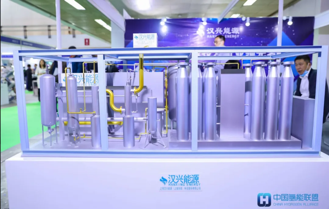 中国氢能联盟副理事长单位中国船舶集团有限公司(以下简称“中国船舶集团”)重点展出了旗下718所的制氢技术,目前已成为我国最大的水电解制氢设备研发和生产基地,设备性能国内领先,主要技术指标达到国际先进水平。近年来,718所还相继研发出纯水制氢、甲醇分解制氢、变压吸附制氢等设备,广泛应用于电力、冶金、化工等领域。