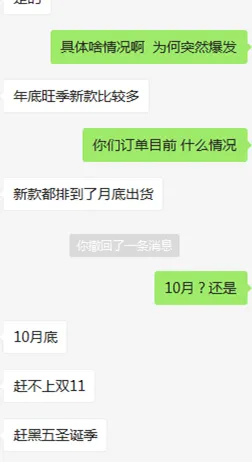 此外,据雨果菌了解,突如其来的爆单,工厂还可能面临原材料问题、产能不足问题、备货问题以及跑单问题。
