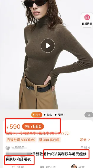 这款半高领和上一款的区别在于不是“一线成衣”,所以价格会便宜一点。