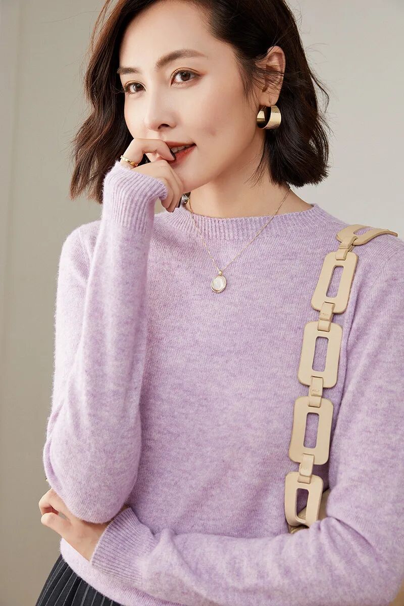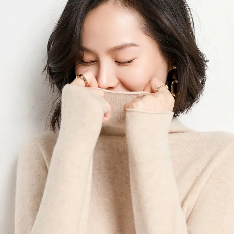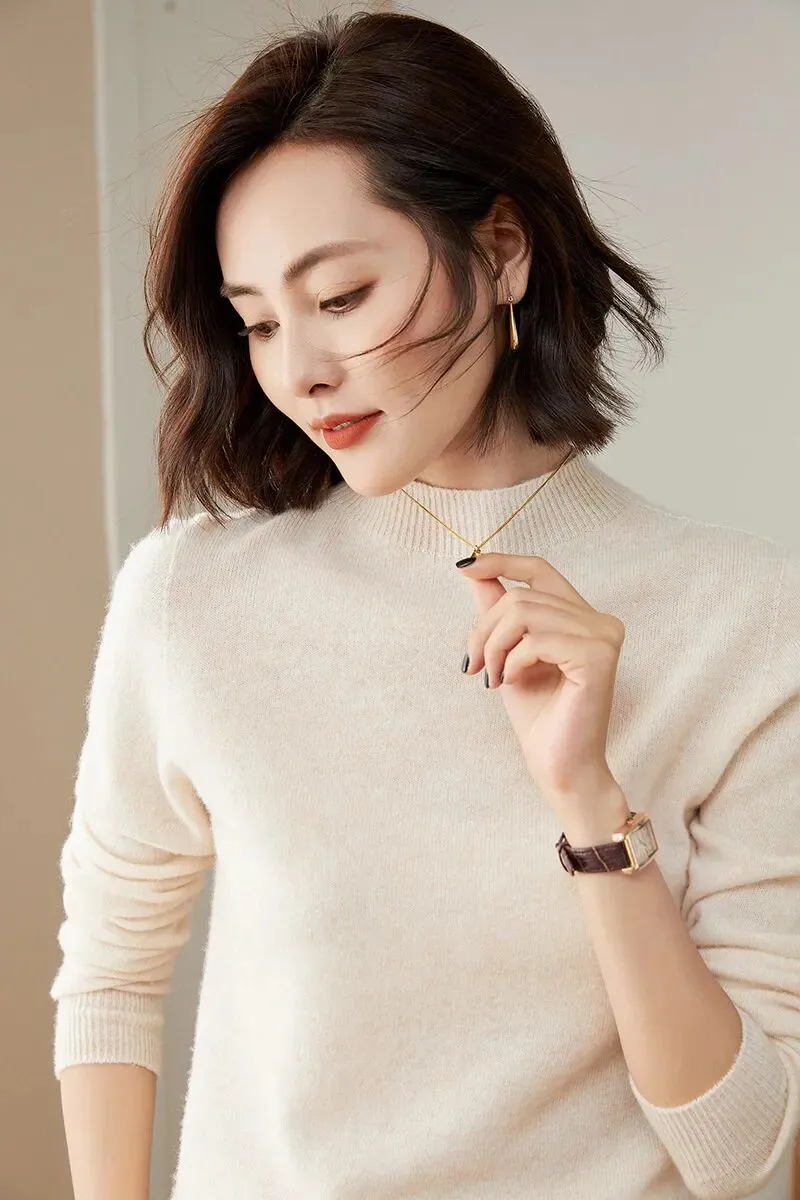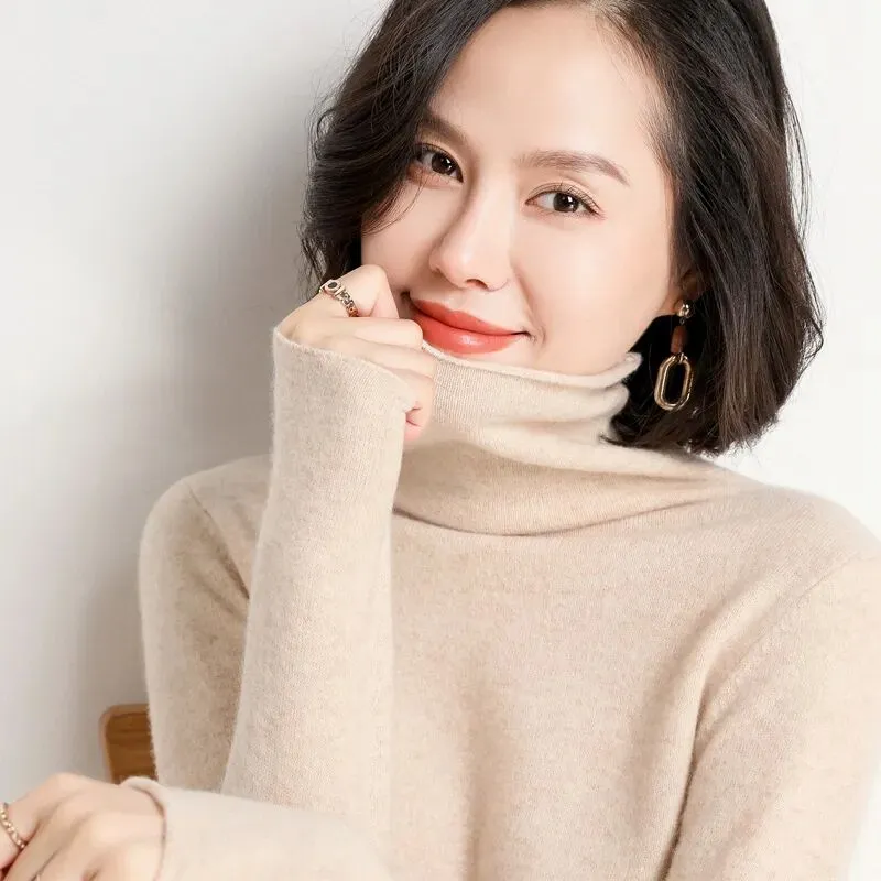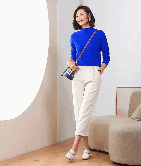 半高领的设计,相比高领少了一丝束缚感,又比低领多一丝气质感,给人感觉很优雅,可以修饰颈部线条。