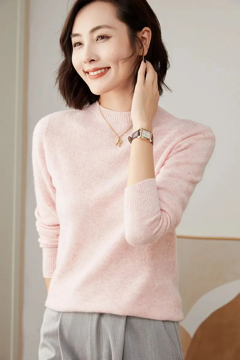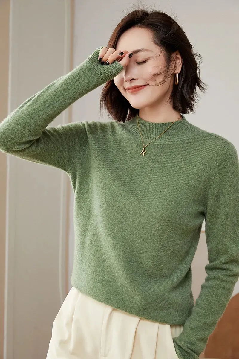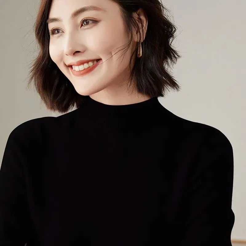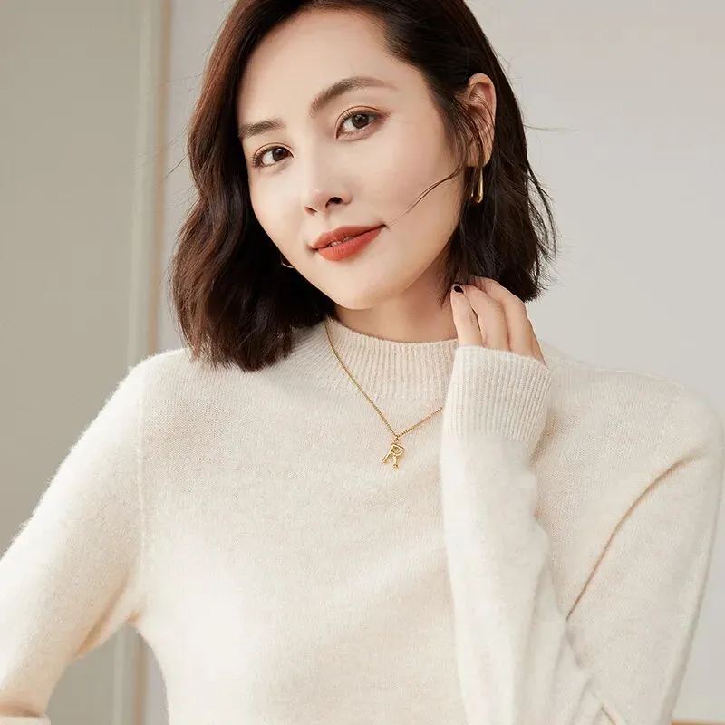 半高领的设计,相比高领少了一丝束缚感,又比低领多一丝气质感,给人感觉很优雅,可以修饰颈部线条。