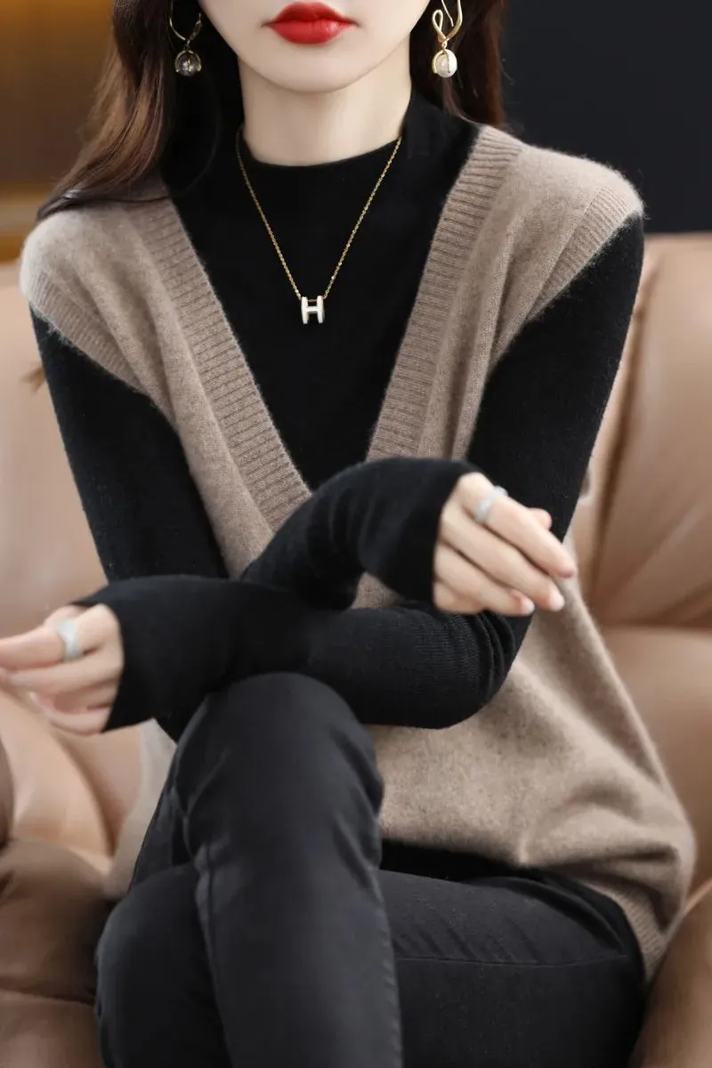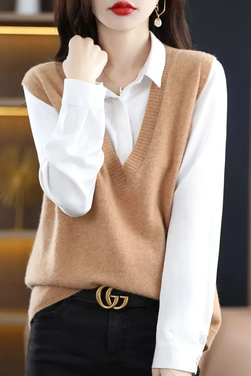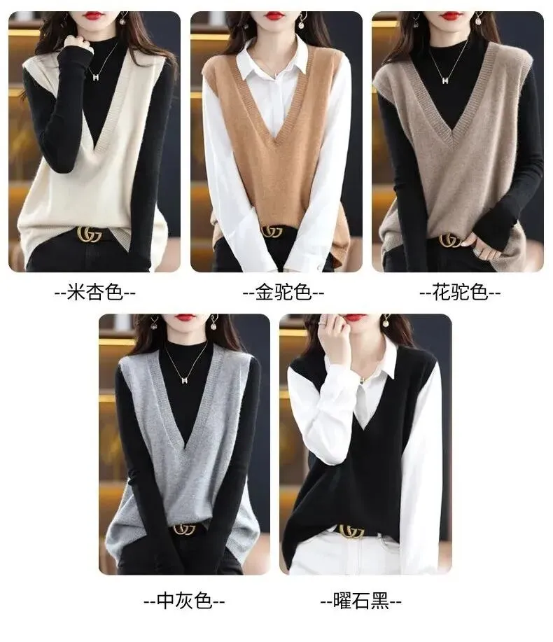 这种深V马甲,作为秋冬时髦单品,几乎每年都会有博主推荐,既能起到搭配效果,又能增加保暖性。