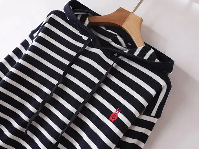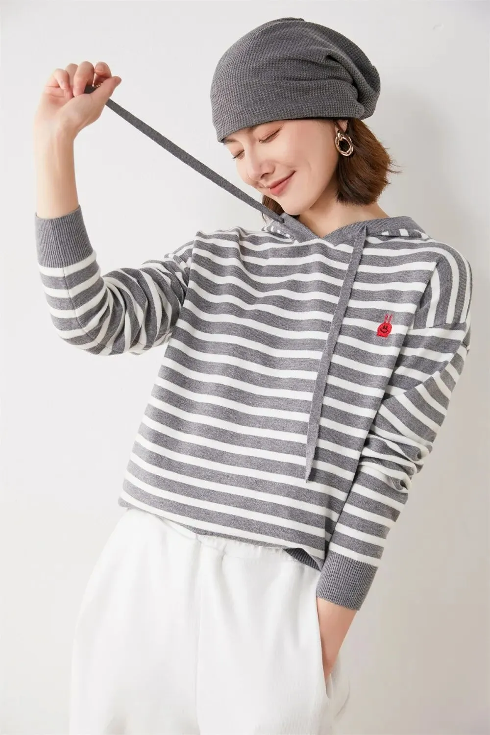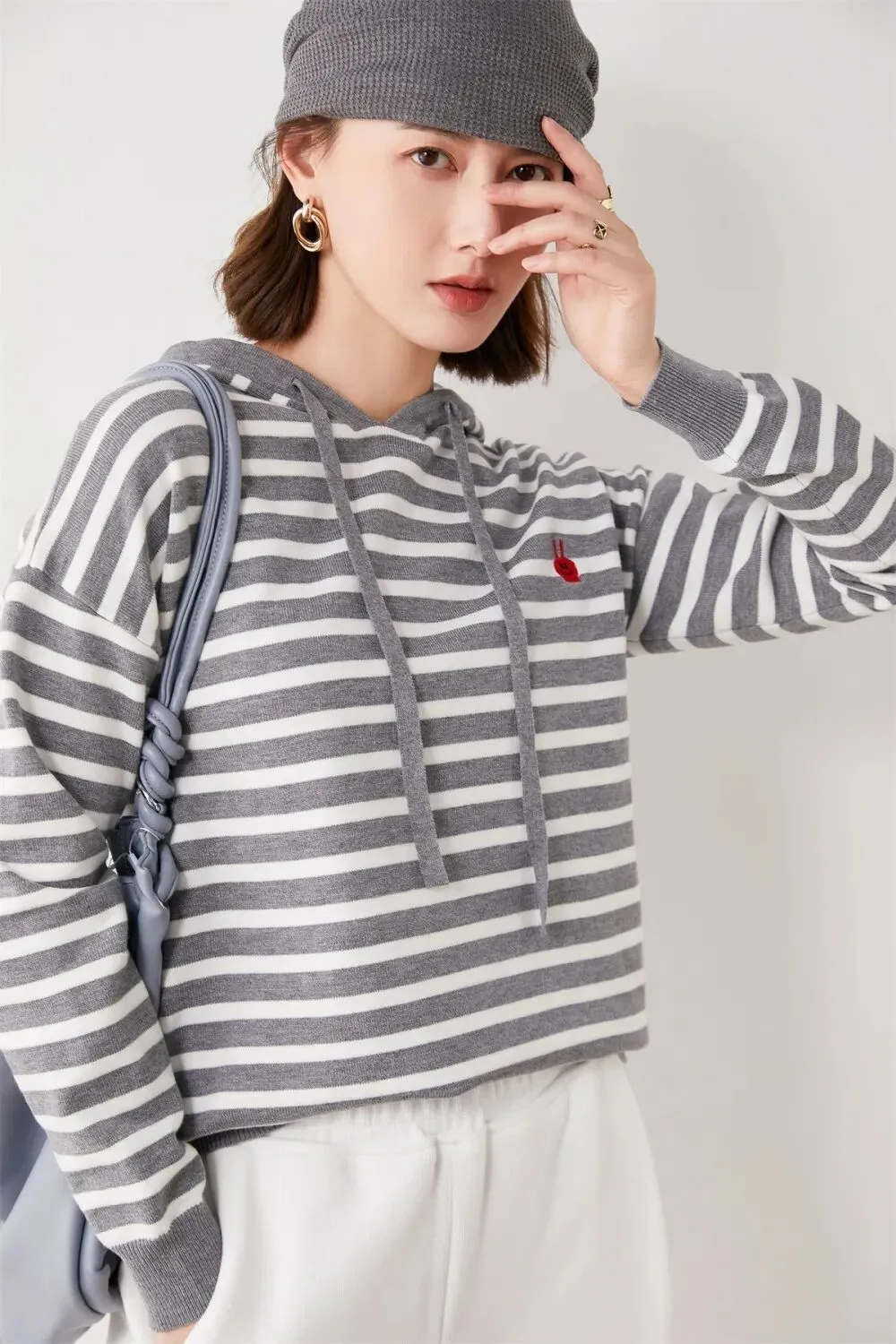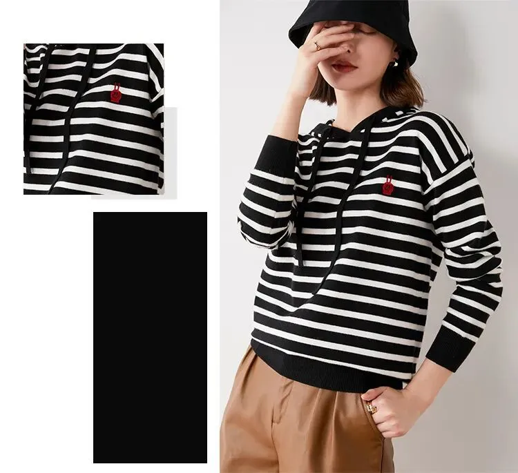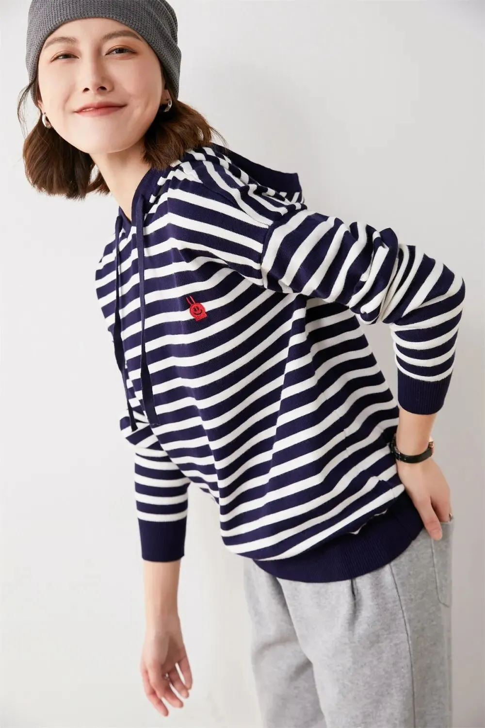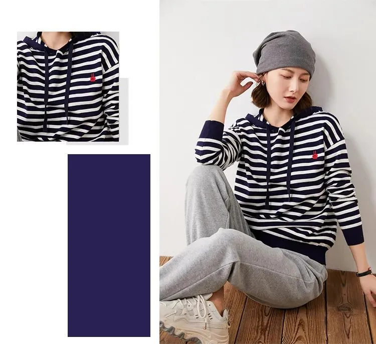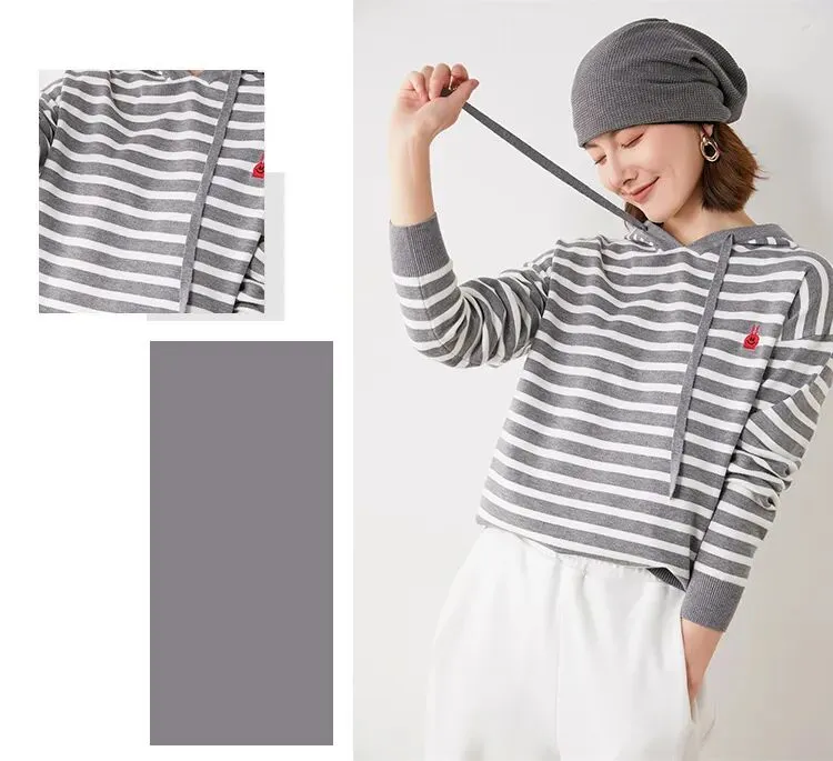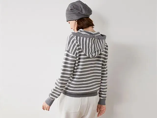 这一款针织面料的“秋季条纹套头连帽衫”,我一定双手推荐,单穿、内搭都很好看的那种。