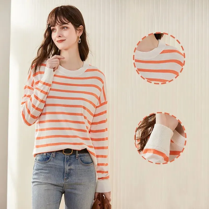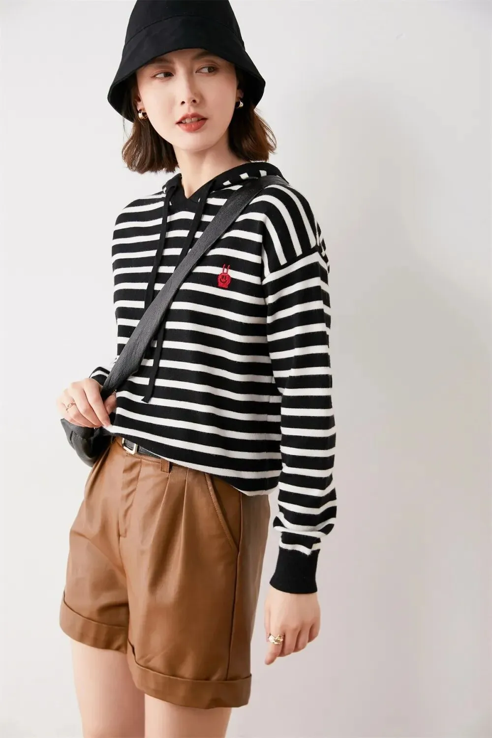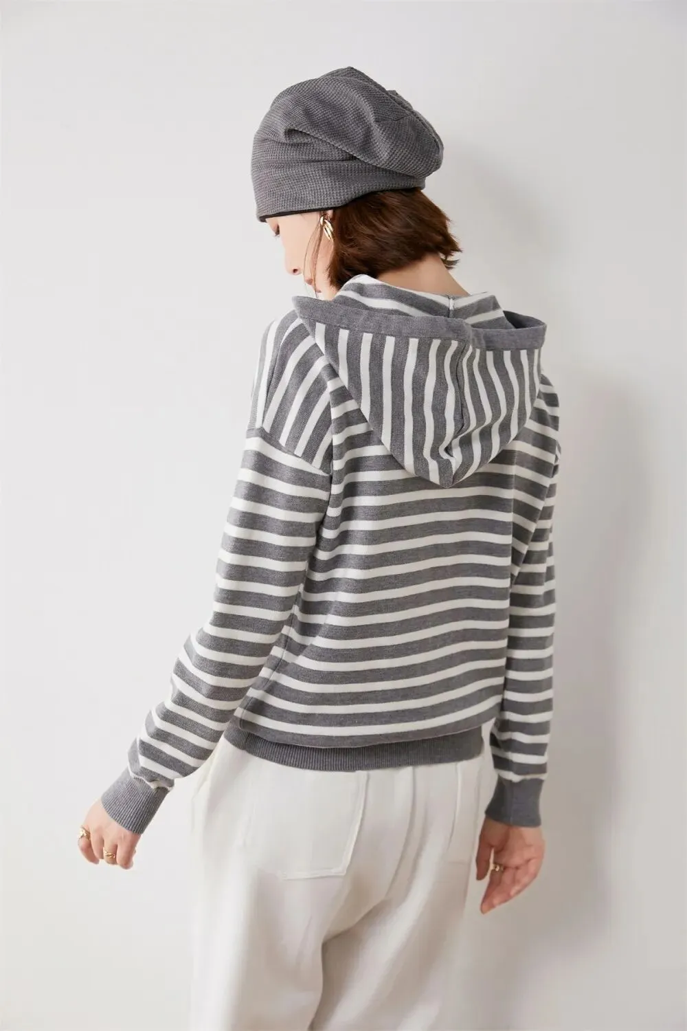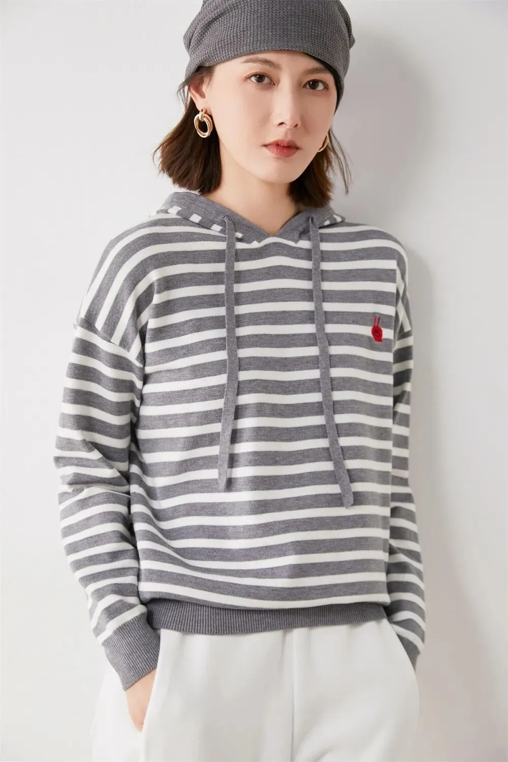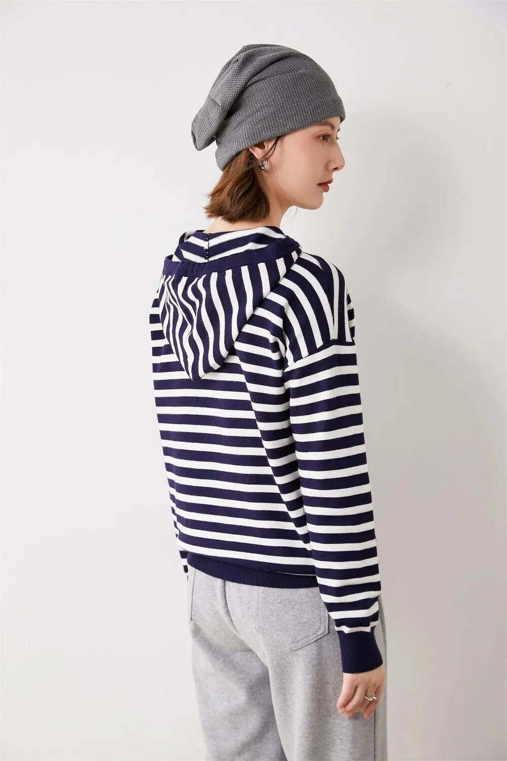 这一款针织面料的“秋季条纹套头连帽衫”,我一定双手推荐,单穿、内搭都很好看的那种。