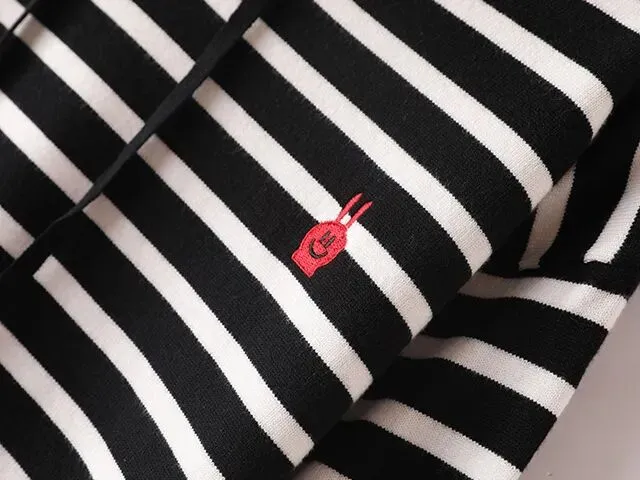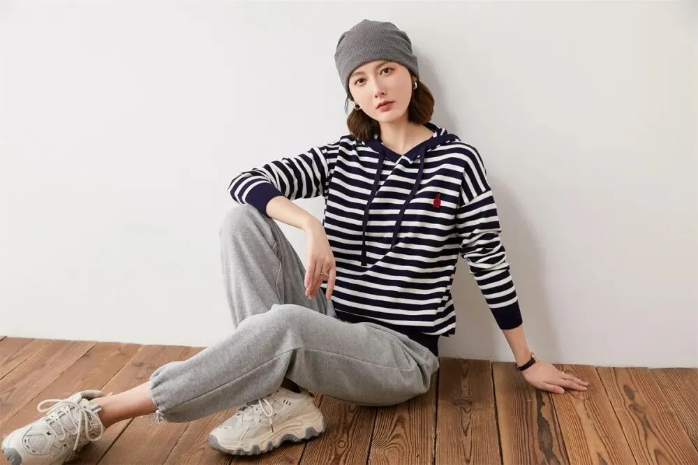为了让不同身材的人穿上都显瘦,看似简单的条纹帽衫,其实在版型上下了大功夫。