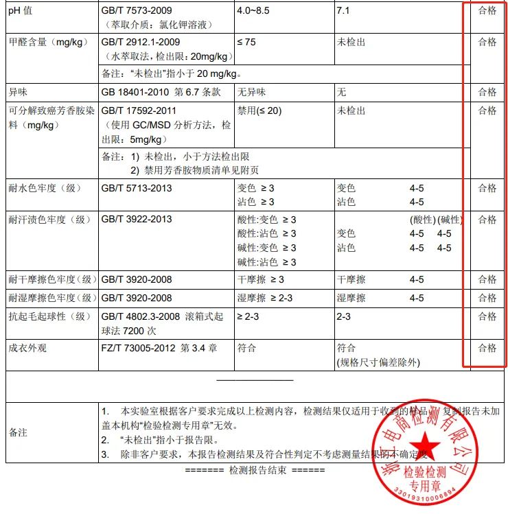 经过第三方机构的检测,不易起球,不易褪色、不含甲醛等可致癌芳香胺染料等有害物质,各项指标都符合国家标准,可以放心穿着。