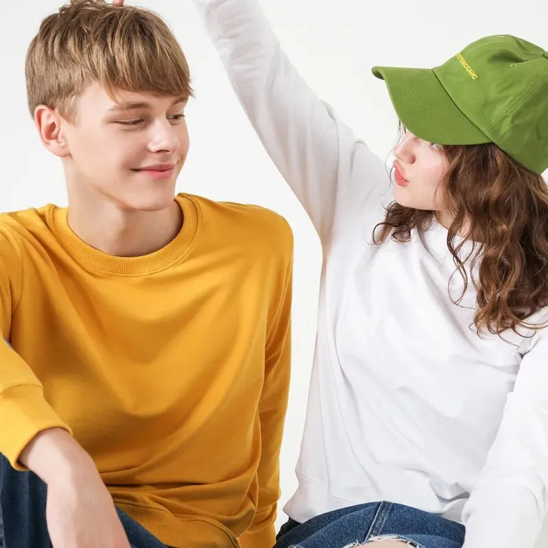 纯棉情侣款落肩宽松连帽/圆领卫衣