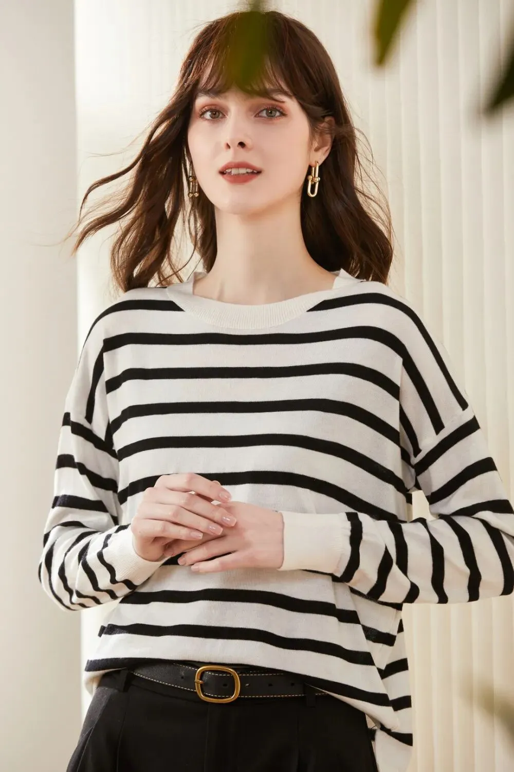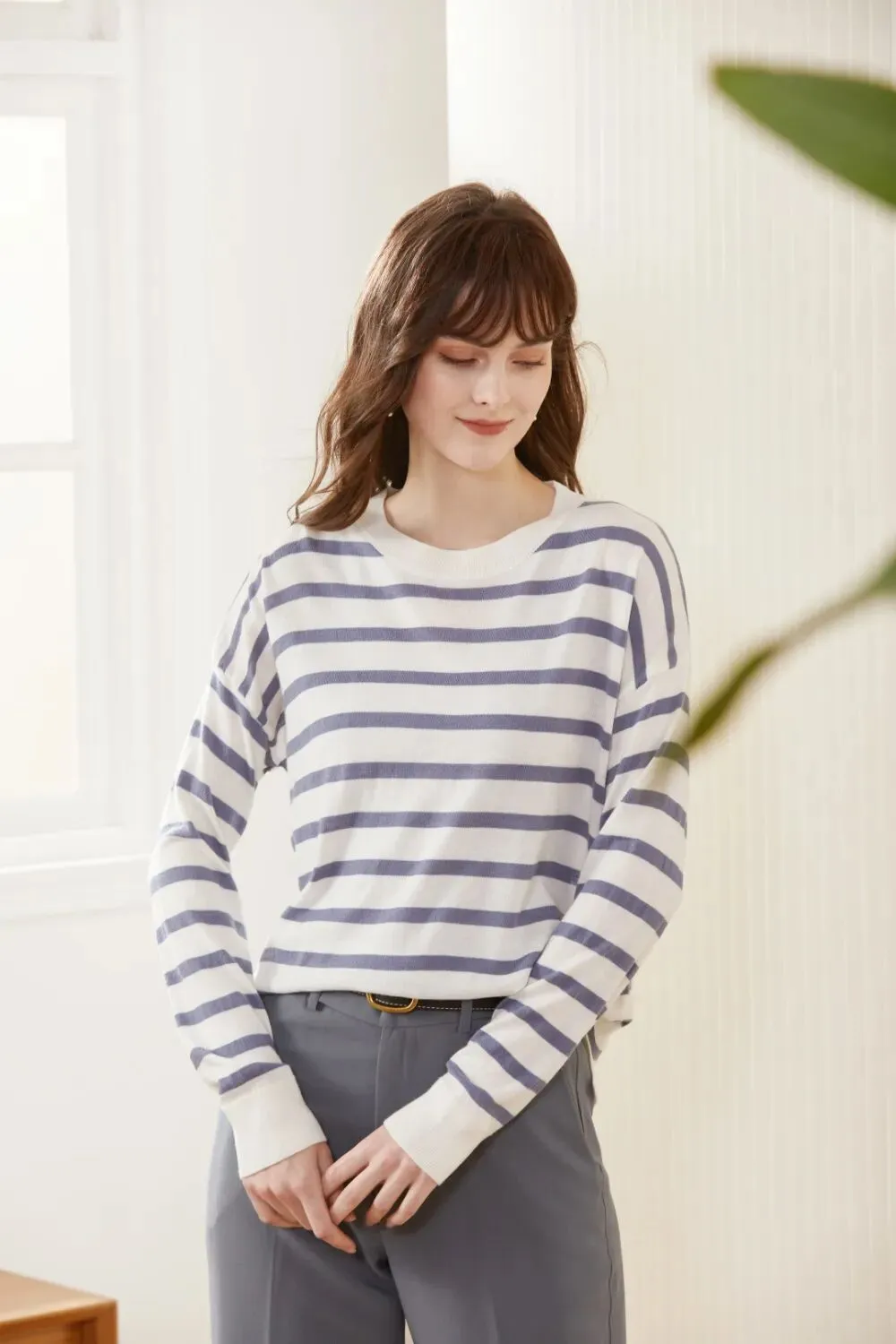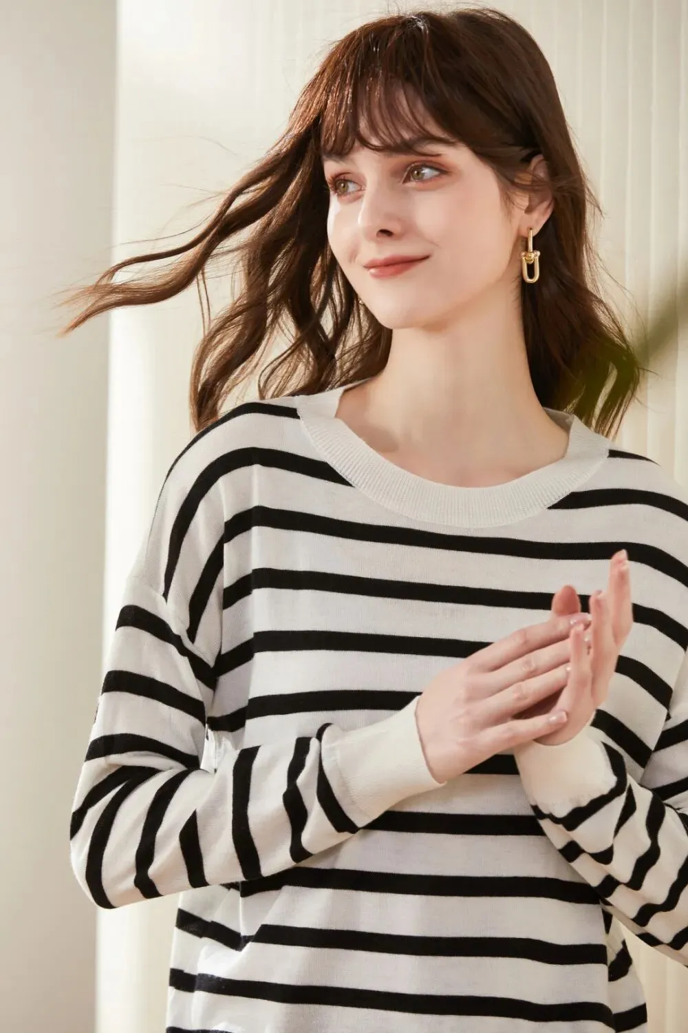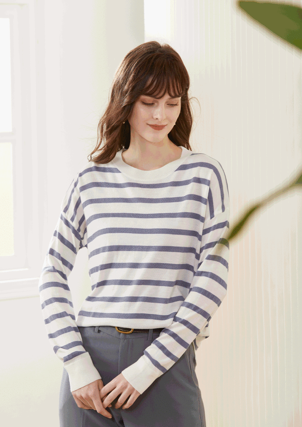 基础简约,又带点法式的浪漫基因,集优雅百搭于一身,一件简单的“海魂衫”就能把女人的精致感表达的刚刚好。
