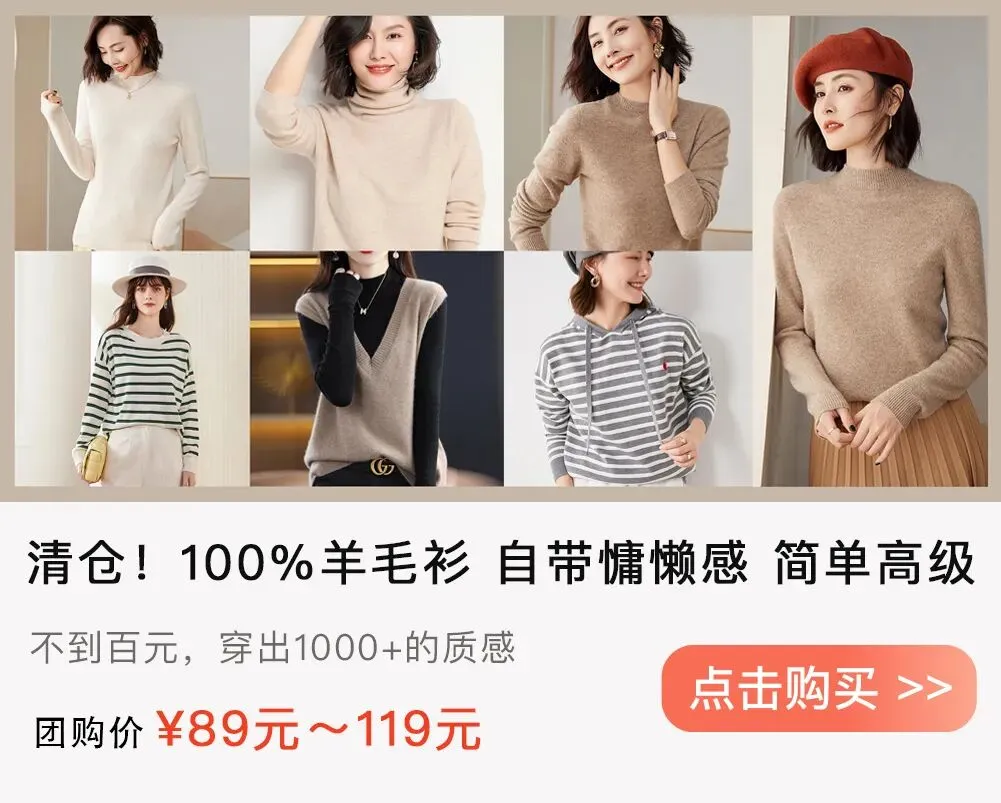 当我告诉我妈这100%羊毛衫89块钱的时候,老妈直接在家族群开起了团购模式,七大姑八大姨都嚷嚷着来一件来一件~~