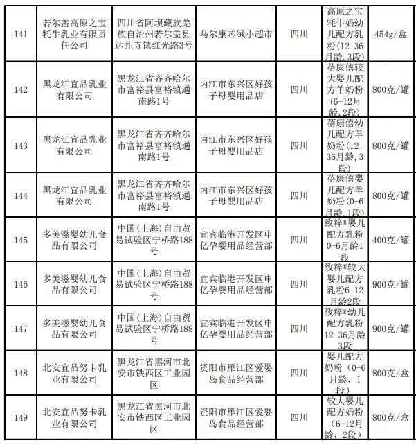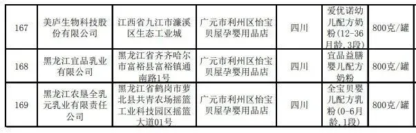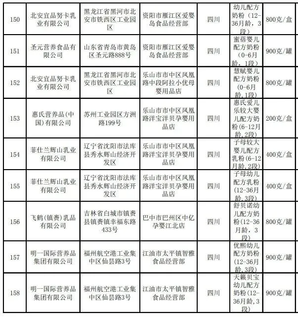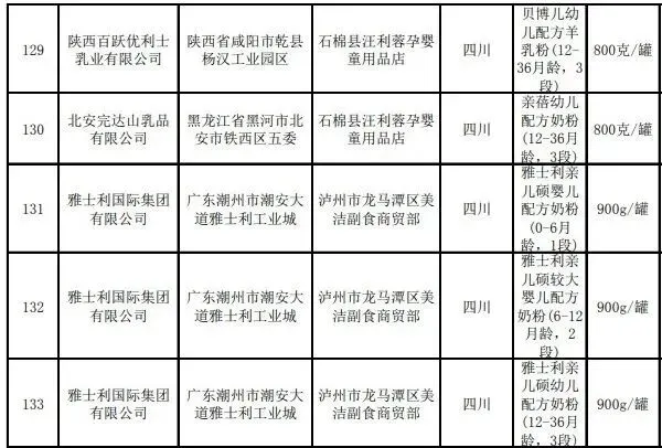 近日,四川省市场监督管理局开展食品安全监督抽检。此次监督抽检信息涉及食用农产品、食品添加剂、酒类、肉制品、乳制品、炒货食品及坚果制品、水产制品、薯类及膨化食品、婴幼儿配方食品共9大类食品182批次样品,发现13批次样品不合格。其中,婴幼儿配方食品全部合格,信息如下:(四川省市场监督管理局)