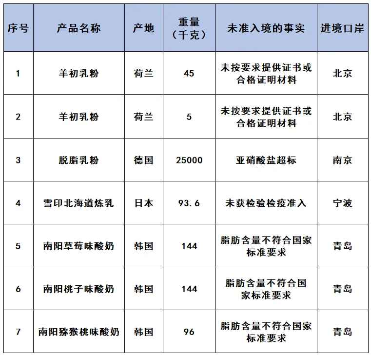 海关总署通报2020年3月未准入境食品信息,多款乳制品上榜