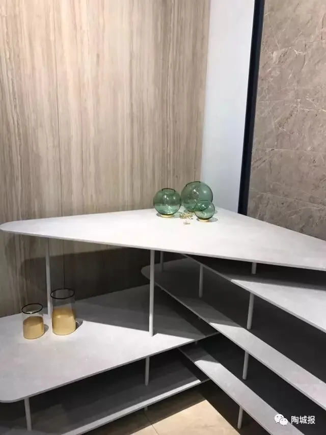 陶丽西重点展示放在大板的各种空间运用以及大板表面效果,上图为胶水+干粒效果。