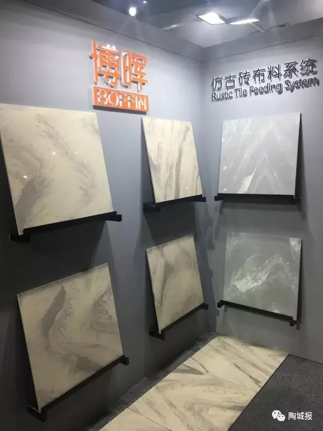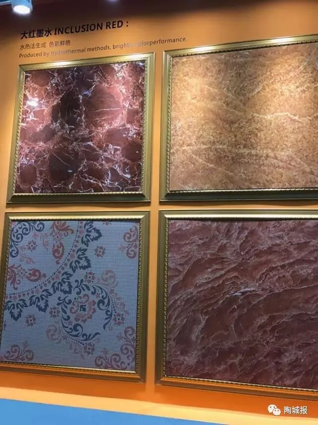 包裹墨水这一次在展会上赚足了人气,除了德国司马化工,国内不少企业也有推出,由于该墨水一改传统墨水发色性能,使得瓷砖产品研发设计构图色彩将更加丰富多彩。