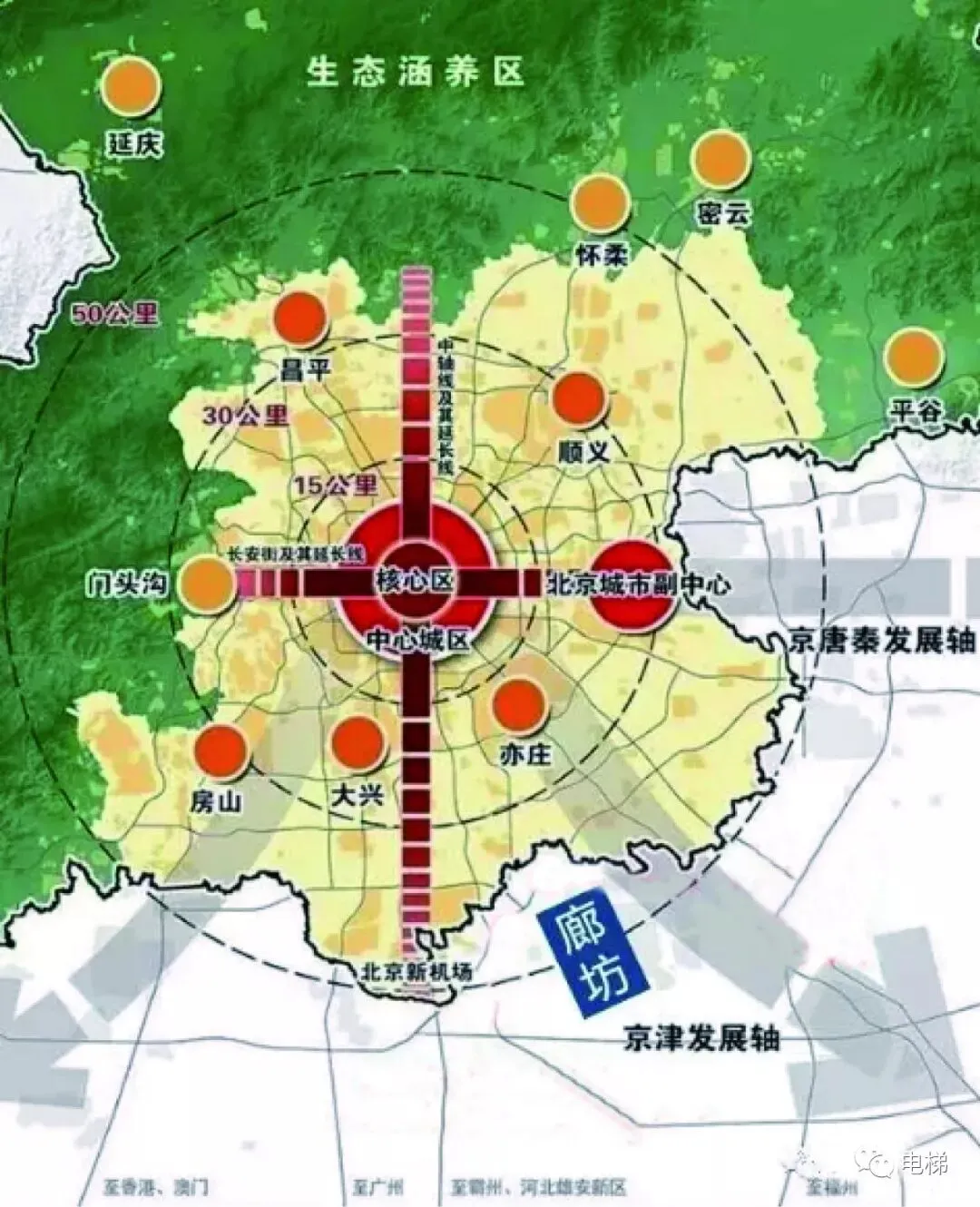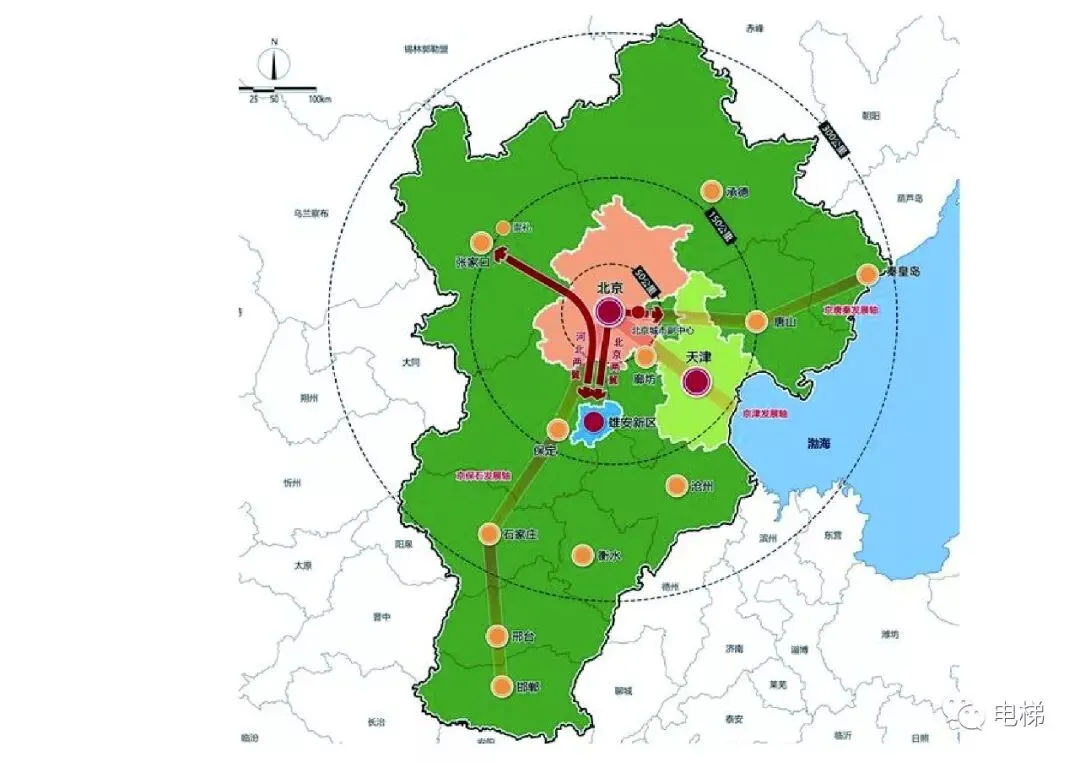 廊坊是京津冀城市群的地理核心区域,位于京津两个国际大都市之间,市区距北京天安门广场仅40公里,距天津中心区60公里,距首都国际机场和天津滨海国际机场两大机场70公里,距天津港100公里,距明年竣工试运行的北京新机场只有26公里。北京新机场将建成世界最大的机场,将与高速公路和高铁网络一起构成京津冀地区最重要的交通枢纽。廊坊目前有7条高速公路,5条铁路干线穿越境内,10条国家和20条省级公路纵横交错,是中国铁路、公路密度最大的地区之一。现在,通(通州)武(武清)廊(廊坊)和静(静海)沧(沧州)廊(廊坊)、新机场经济产业带日益成熟,建筑集群将明显增加,电梯市场将迎来又一个春天。